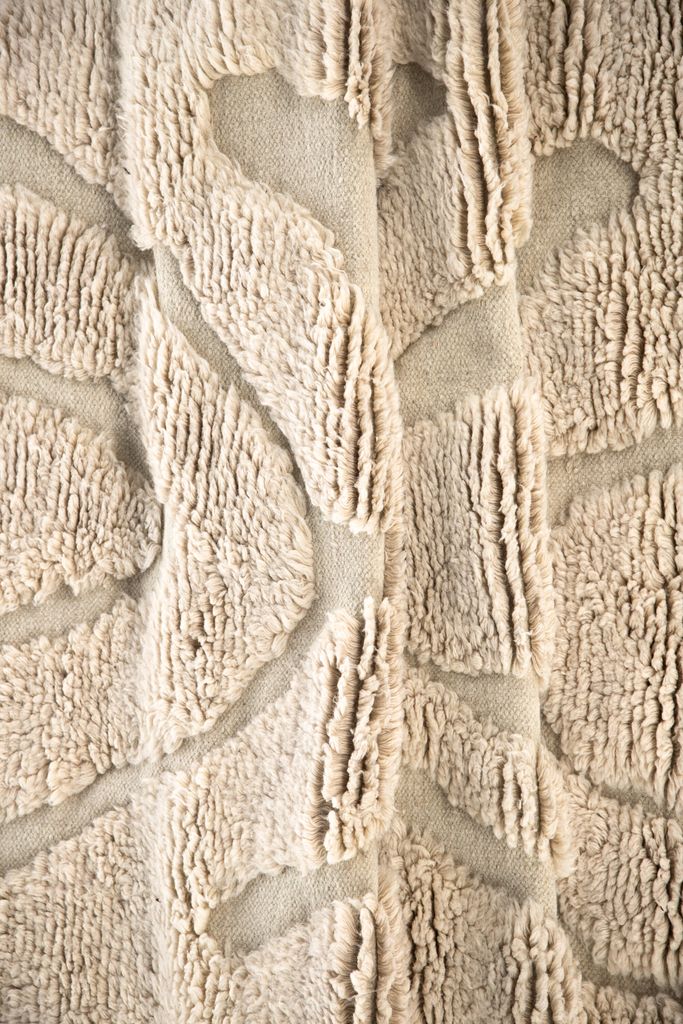 Ge ditt hem ett stilfullt lyft med Vind Collection Trondheim x Josefin Lustig Matta. Den här handvävda mattan kombinerar skönhet och funktionalitet i en dekorativ design med en jordnära färgbas i beige. Mattans tuftade mönster skapar en underbar textur och dimension, vilket ger ett varmt och inbjudande intryck till vilket rum som helst.