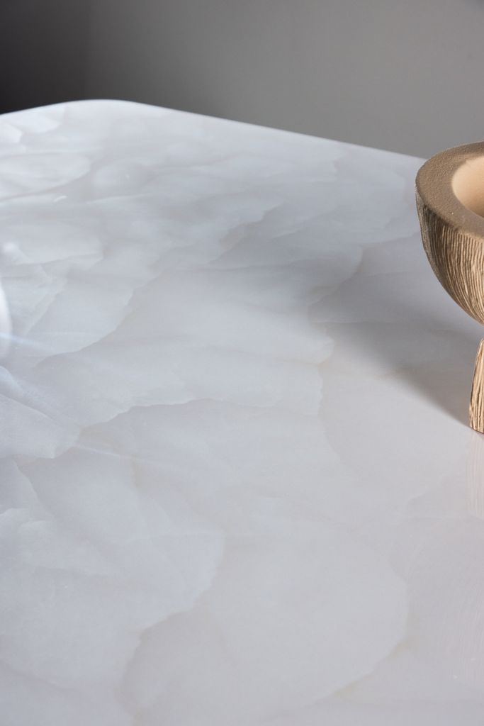 Väddö kombinerar rymd, stabilitet och stilrenhet, vilket gör det till en idealisk plats för både vardagsfrukostar och långa middagar med vänner. Det släta, vita laminatet bidrar till en lättskött yta som är enkel att rengöra.