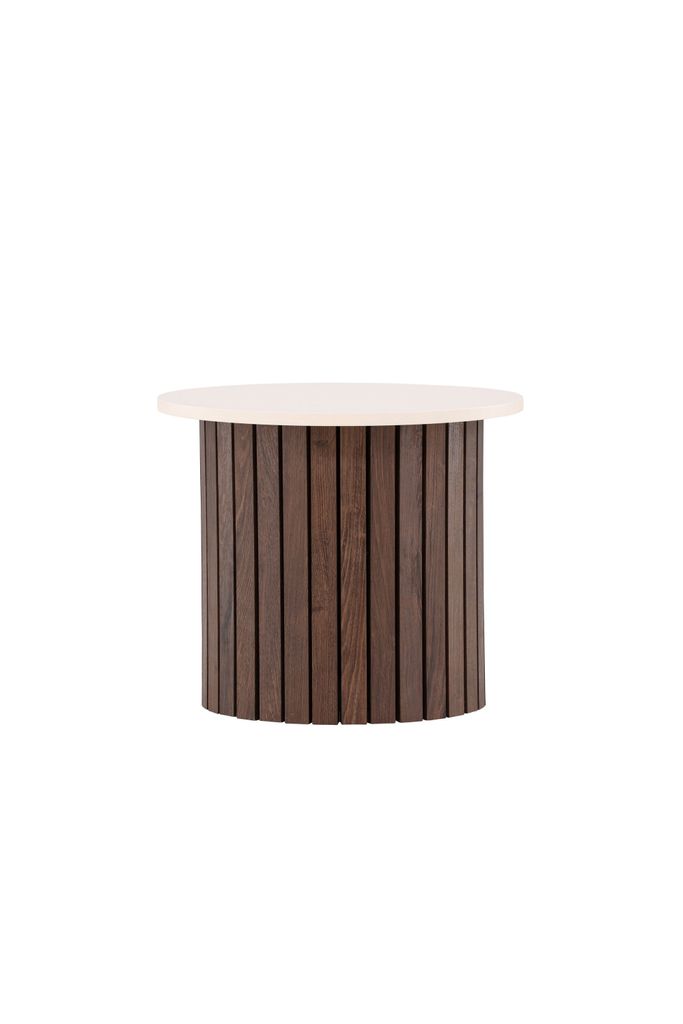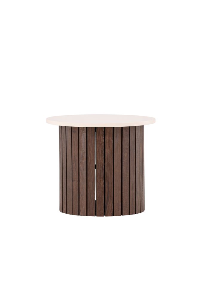 Elegant sidobord i FSC-certifierat trä med beige topp och mörkbrun stålstomme. Perfekt för en varm och inbjudande atmosfär.