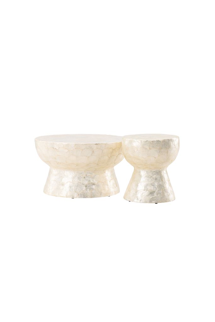 Smögen-soffbord, tillverkat i elegant Capiz, i två storlekar. Flexibelt och stilrent för det moderna hemmet.