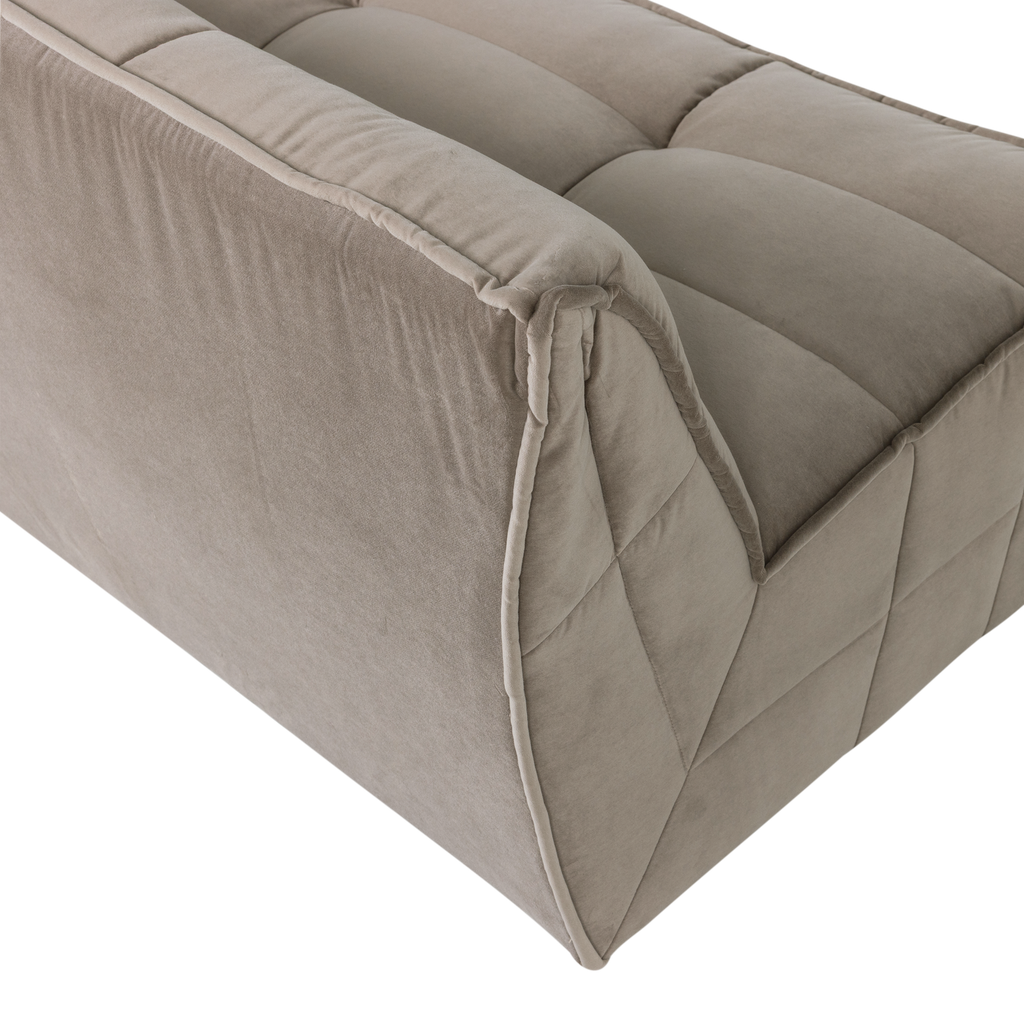 Luxuriös 3-sits soffa i varm taupe sammet. Djup sittkomfort och karaktärsfull design i Cluster-serien.