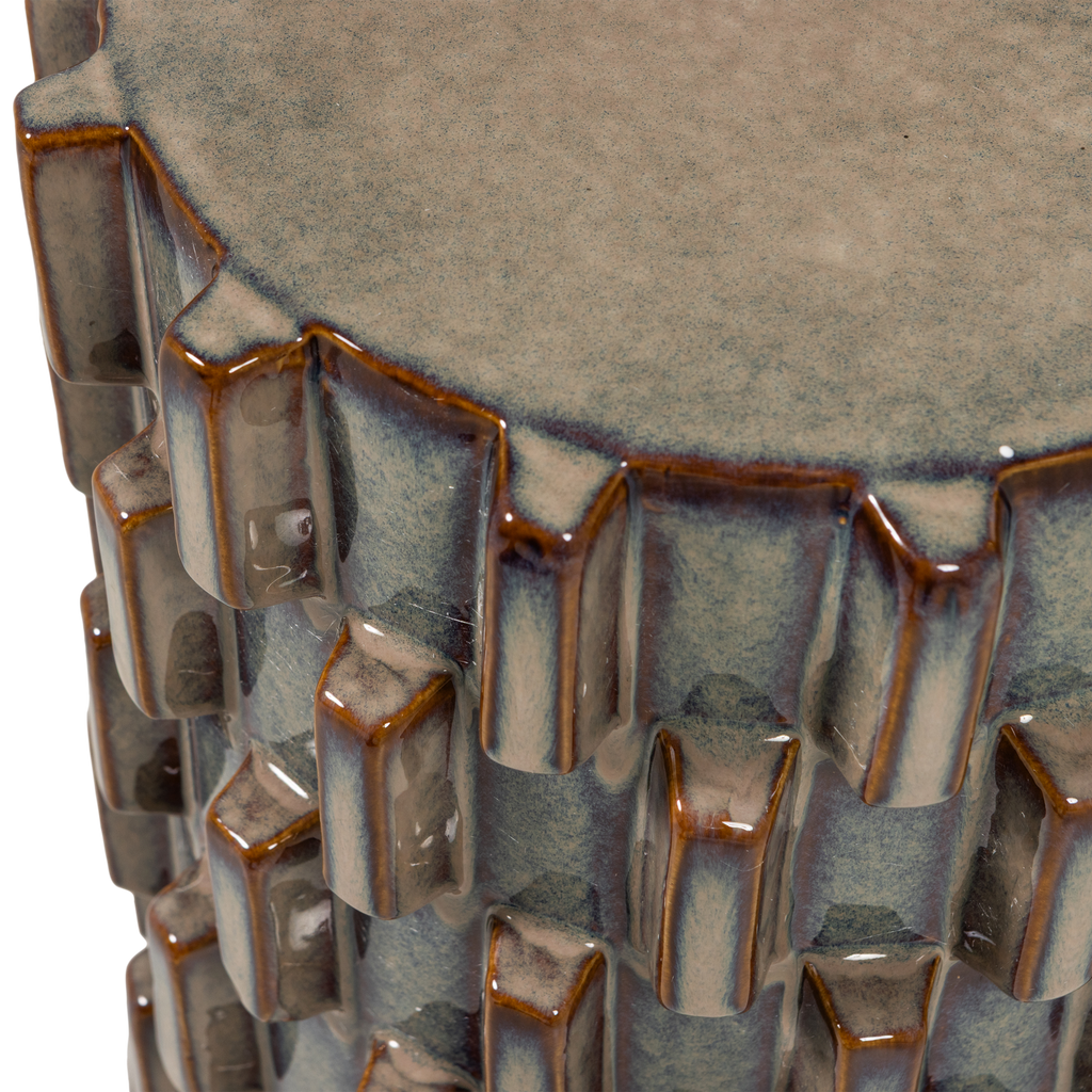 Elegant sidobord i gråblå keramik med glansig yta och unik design, perfekt för modern och klassisk inredning.