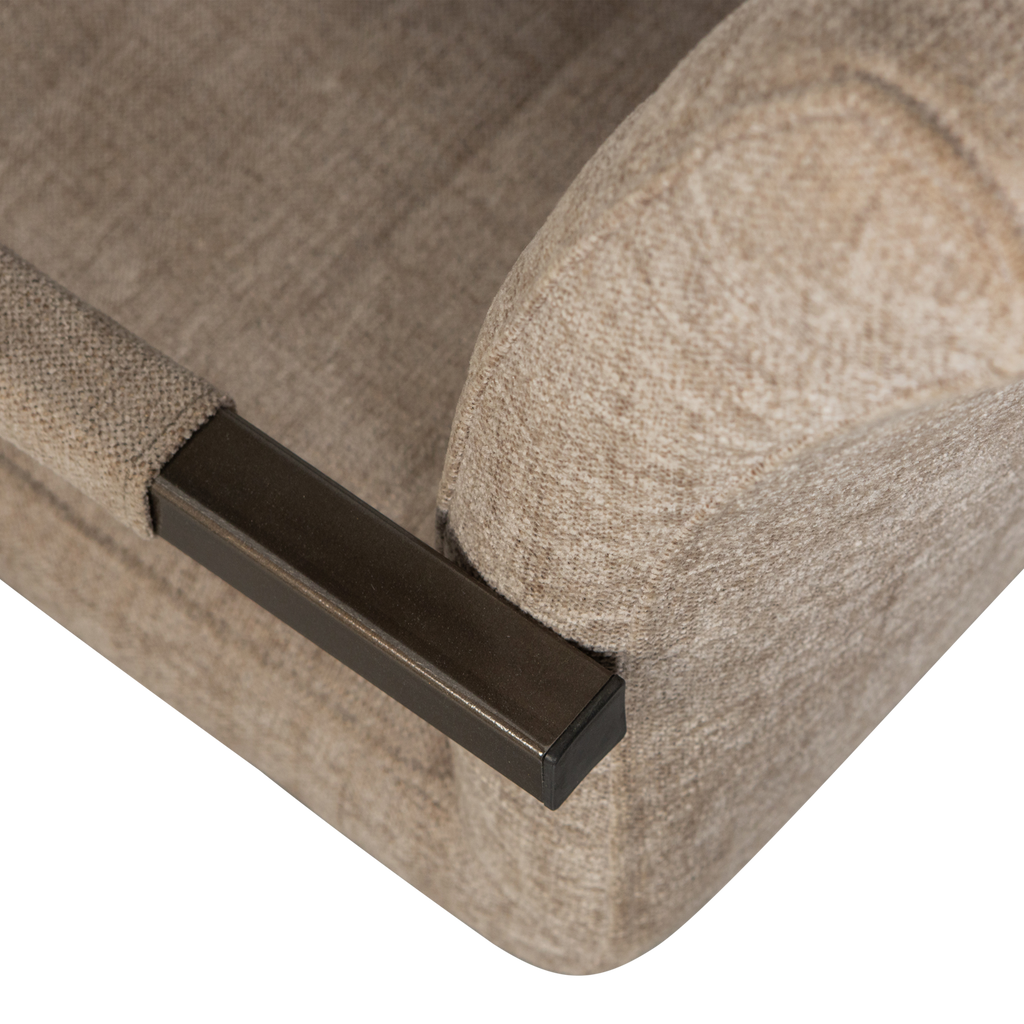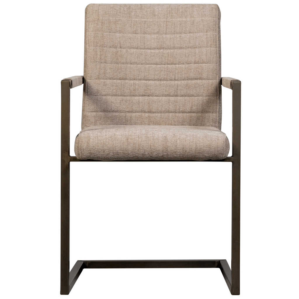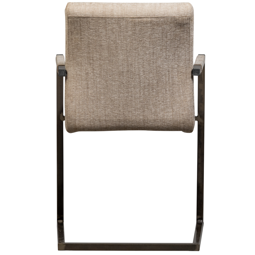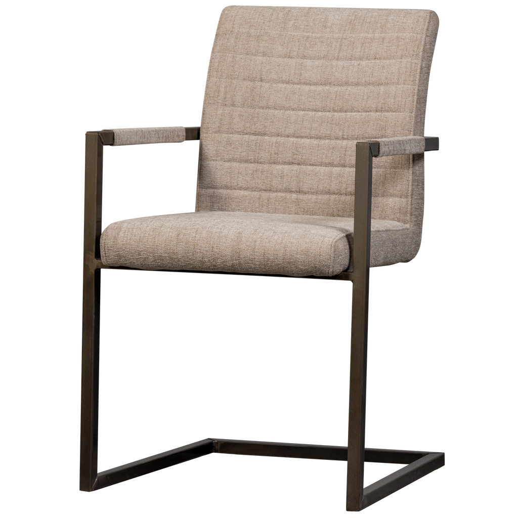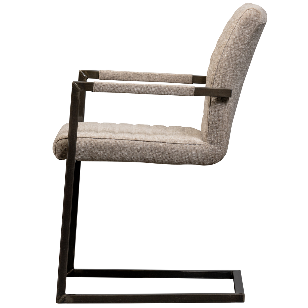 Elegant och bekväm matstol med vävd tyg i sand melange, perfekt för moderna interiörer. Robust metallram med svart finish.