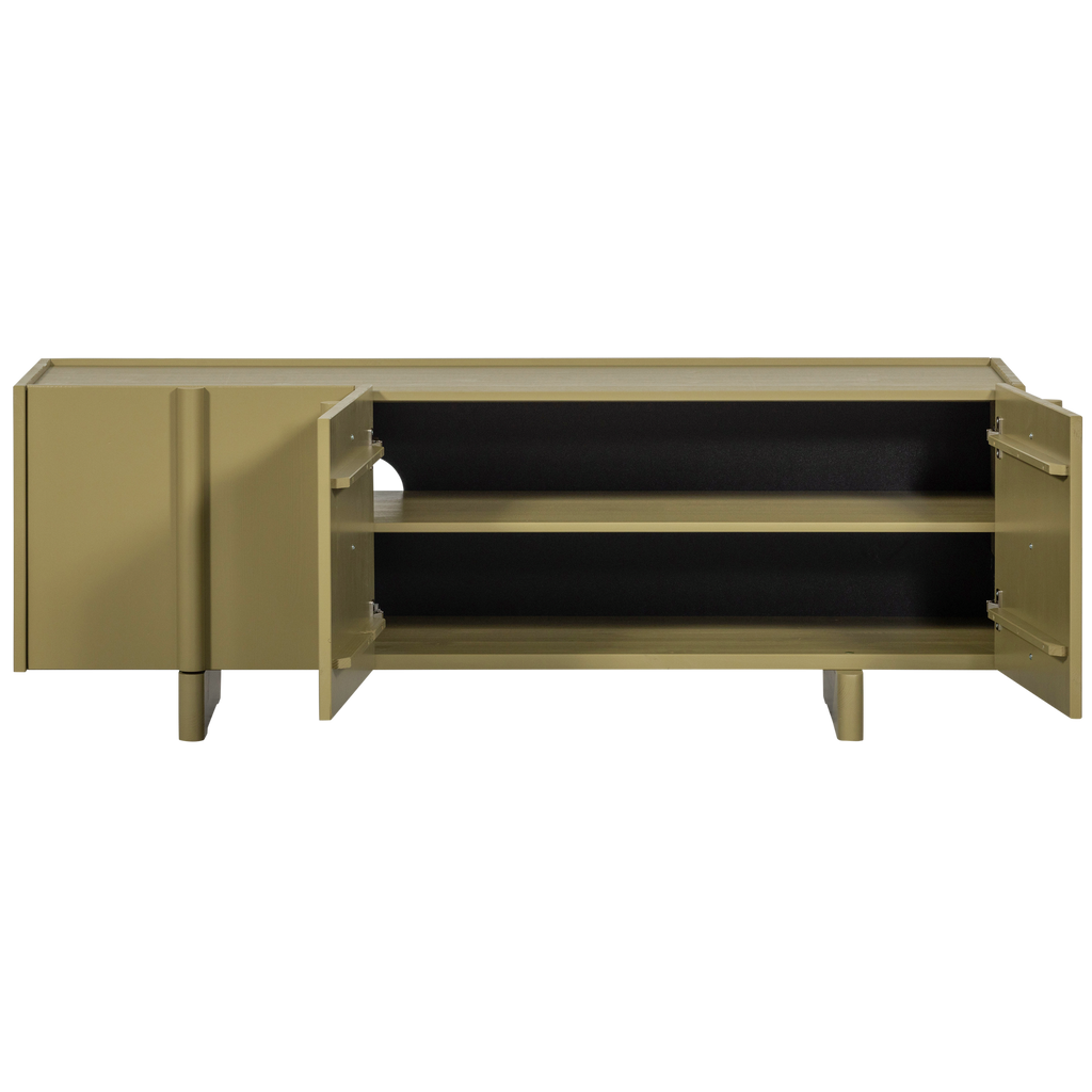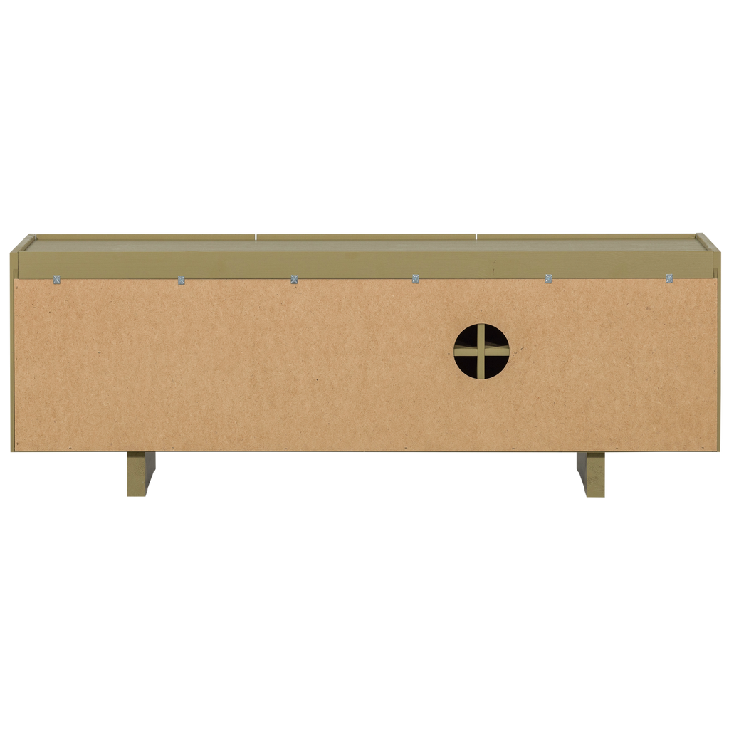 Elegant TV-bänk i mossgrönt furu. Praktisk och stilren för alla hem. Två hyllor för optimal förvaring.