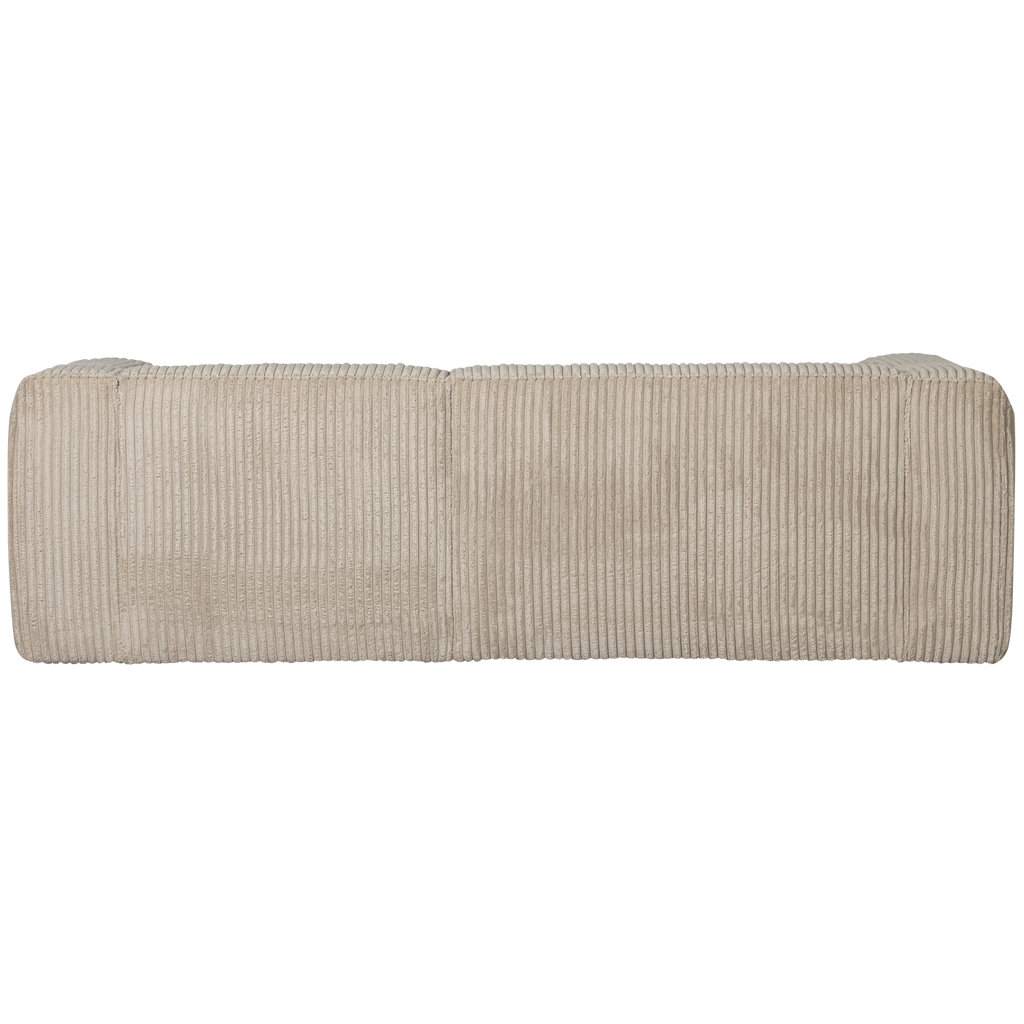 WOOOD BEAN Chaiselong Soffa erbjuder en perfekt kombination av stil och komfort. Med sin grova, breda ribbstoff i en elegant travertinfärg ger denna soffa ett robust men ändå lugnt intryck i ditt vardagsrum.