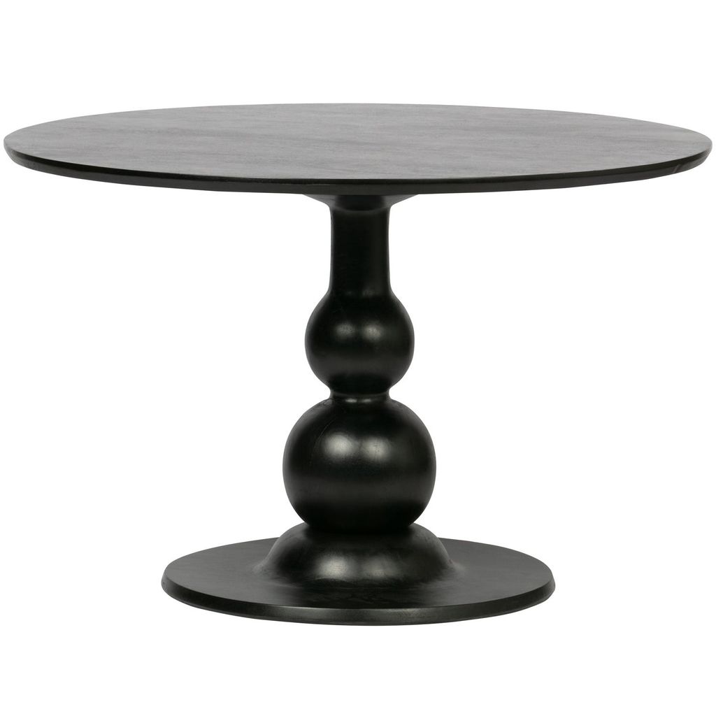 Upptäck WOOOD Blanco Rund Matbord, en elegant och robust möbel som lyfter varje rum. Bordet är tillverkat av hållbart mangoträ och har en djup svart finish som ger en modern och sofistikerad känsla. Med sina mått på Ø120 cm erbjuder bordet gott om utrymme för middagar och samlingar. De sfäriska bordsbenen är en stilfull detalj som både ger stabilitet och förstärker dess eleganta utseende.