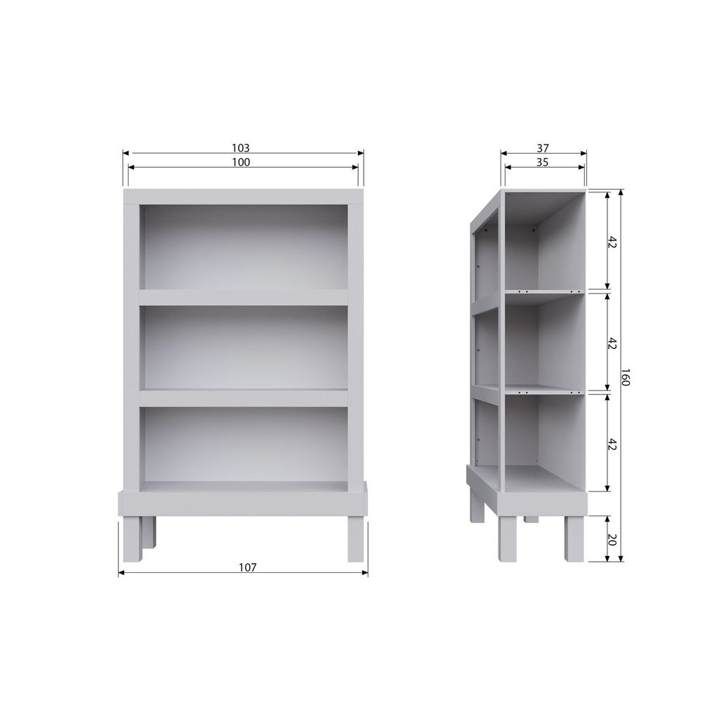 Med tre rymliga hyllplan som mäter 100 cm i bredd och 35 cm i djup, har BONK gott om utrymme för dina favoritböcker och dekorationsföremål. Avståndet på 42 cm mellan hyllorna ger även plats för större objekt. Den totala storleken på hyllan är 160 cm i höjd, 107 cm i bredd och 39 cm i djup, vilket ger en stabil och robust konstruktion.