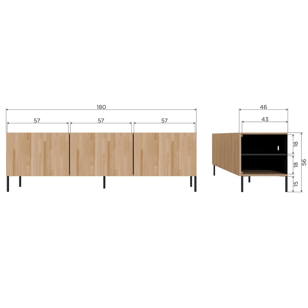 Upptäck det eleganta WOOOD Bono Gravure TV-möbel i naturligt ek, en perfekt kombination av stil och funktionalitet. Med måtten H 56 cm x B 180 cm x D 46 cm erbjuder denna möbel gott om plats för all din mediautrustning och tillbehör.