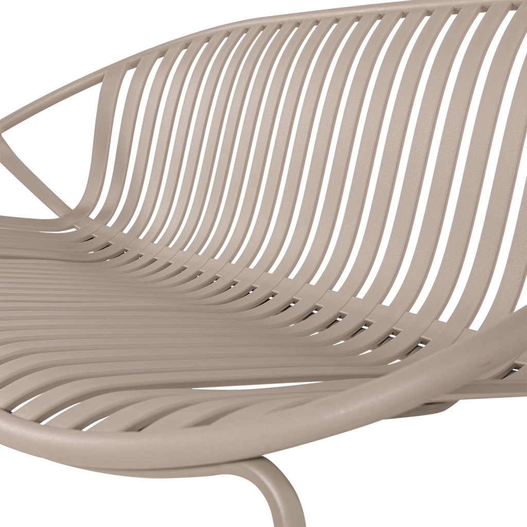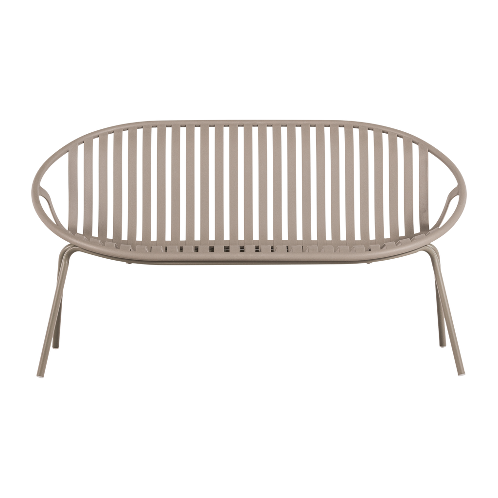 Den hållbara konstruktionen av polypropen och metall ger soffan en robust känsla, samtidigt som den är både väderbeständig och vattenavvisande - idealisk för det svenska klimatet. Soffans sandfärgade yta smälter vackert in i vilken utomhusmiljö som helst och kan enkelt kompletteras med kuddar eller filtar för extra komfort.