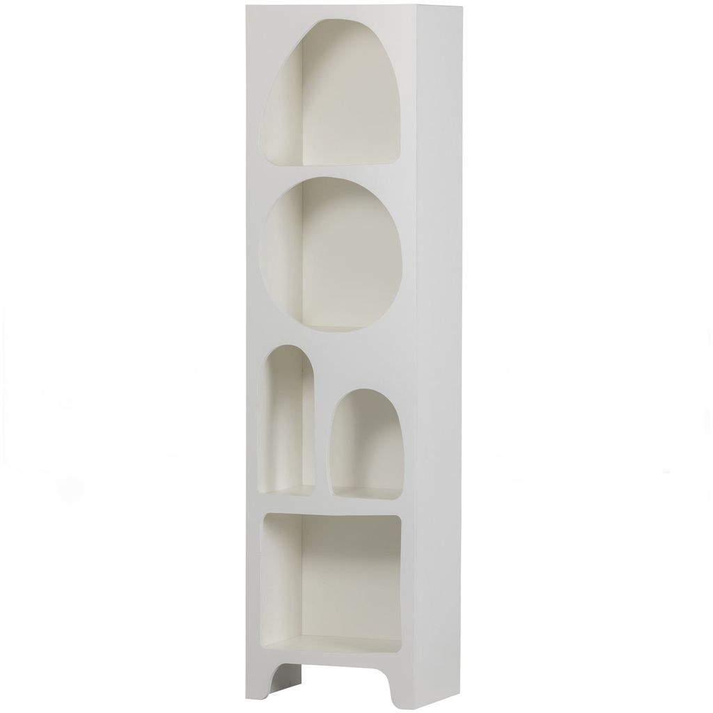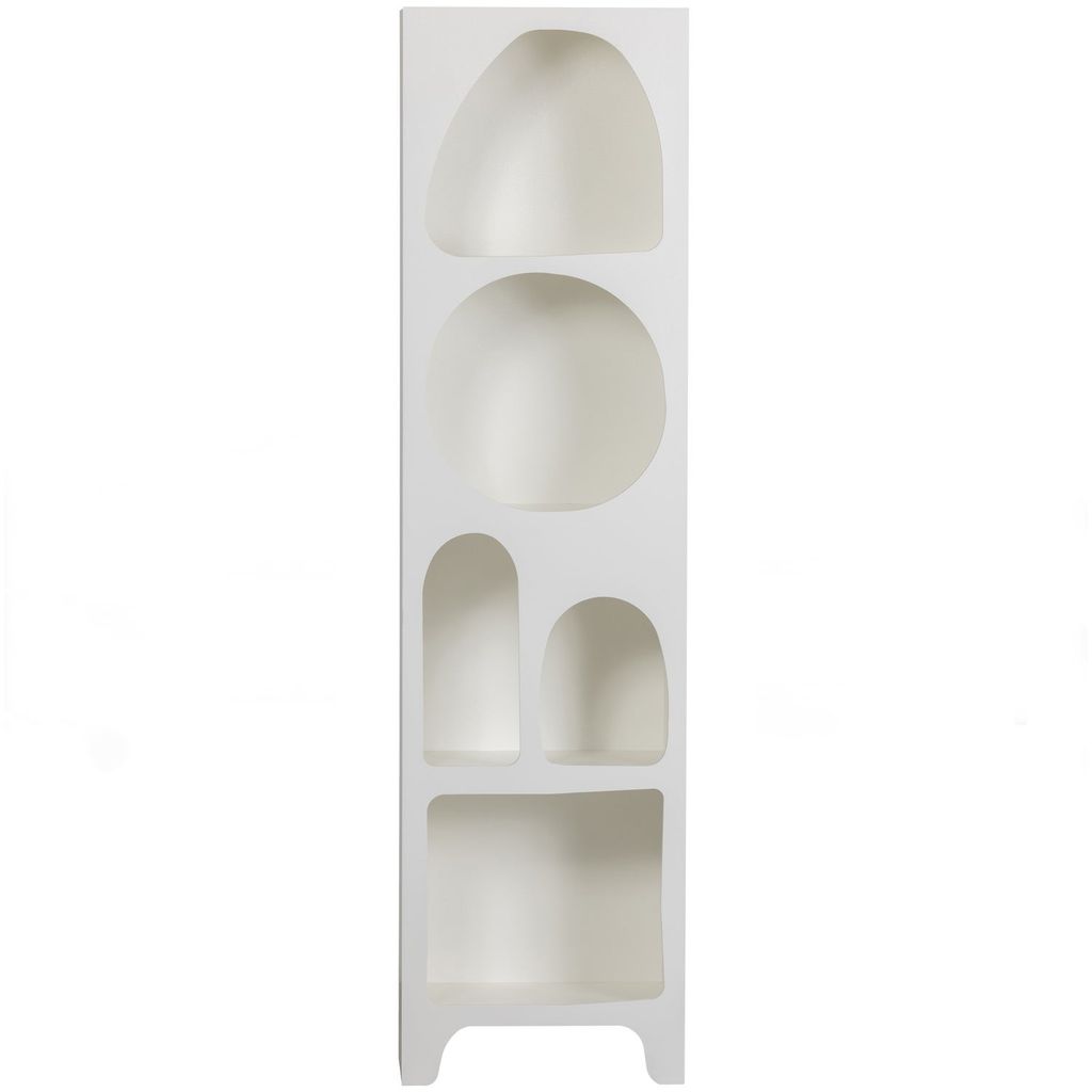 Få en modern och funktionell touch till ditt hem med WOOOD CAZ Vitrinhylla Smal Vit. Denna eleganta hylla är tillverkad av högkvalitativ plywood med en stilren vit finish, vilket ger en ren och modern känsla till varje rum. Hyllan har fem organiskt formade fack som inte bara erbjuder praktisk förvaring utan också fungerar som ett konstverk i sig.