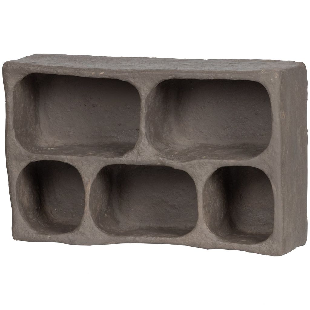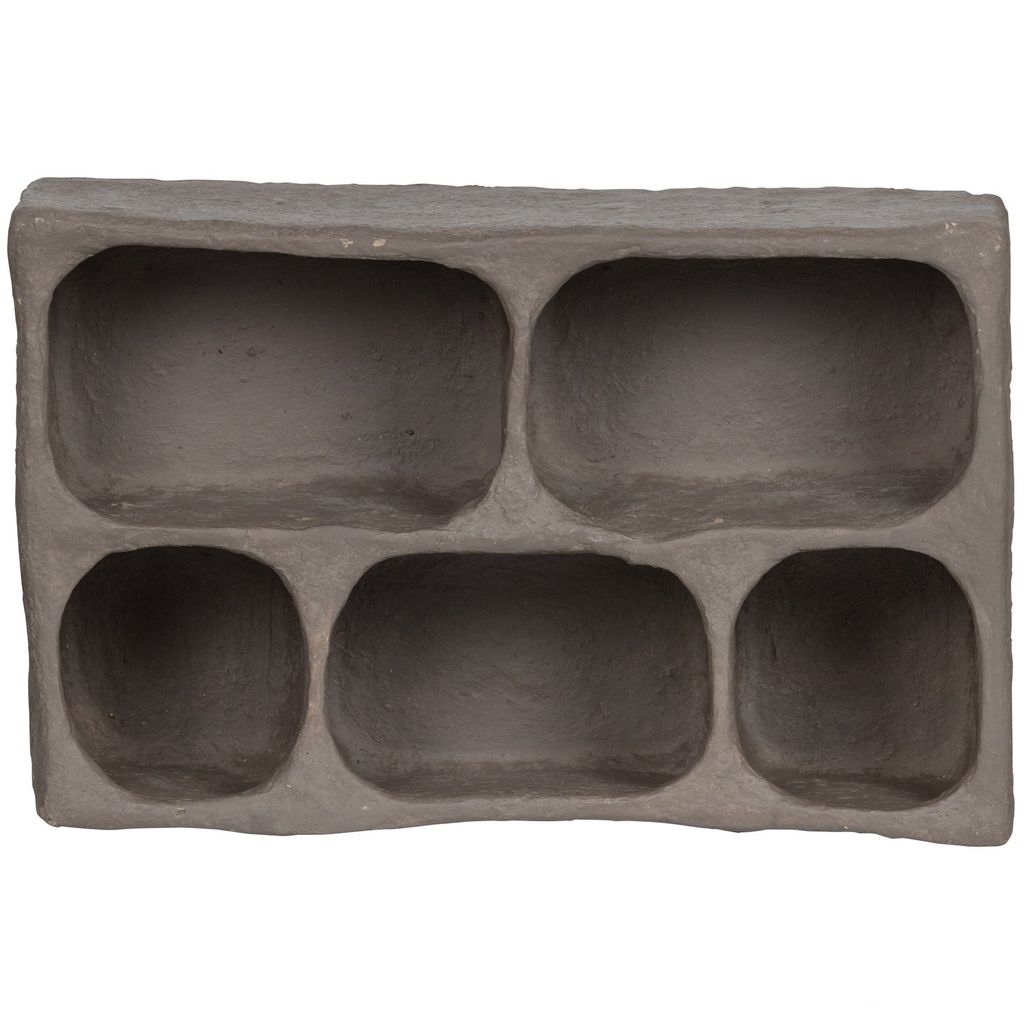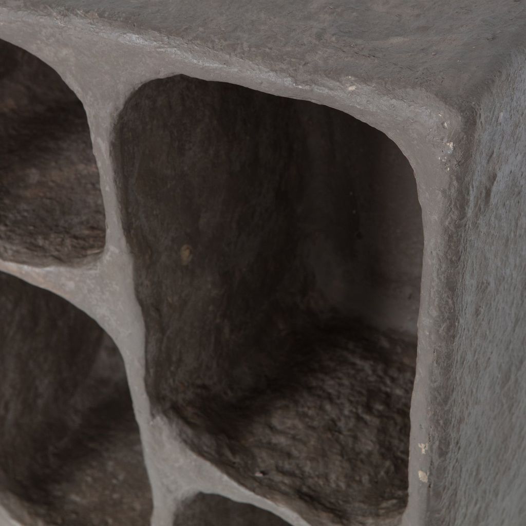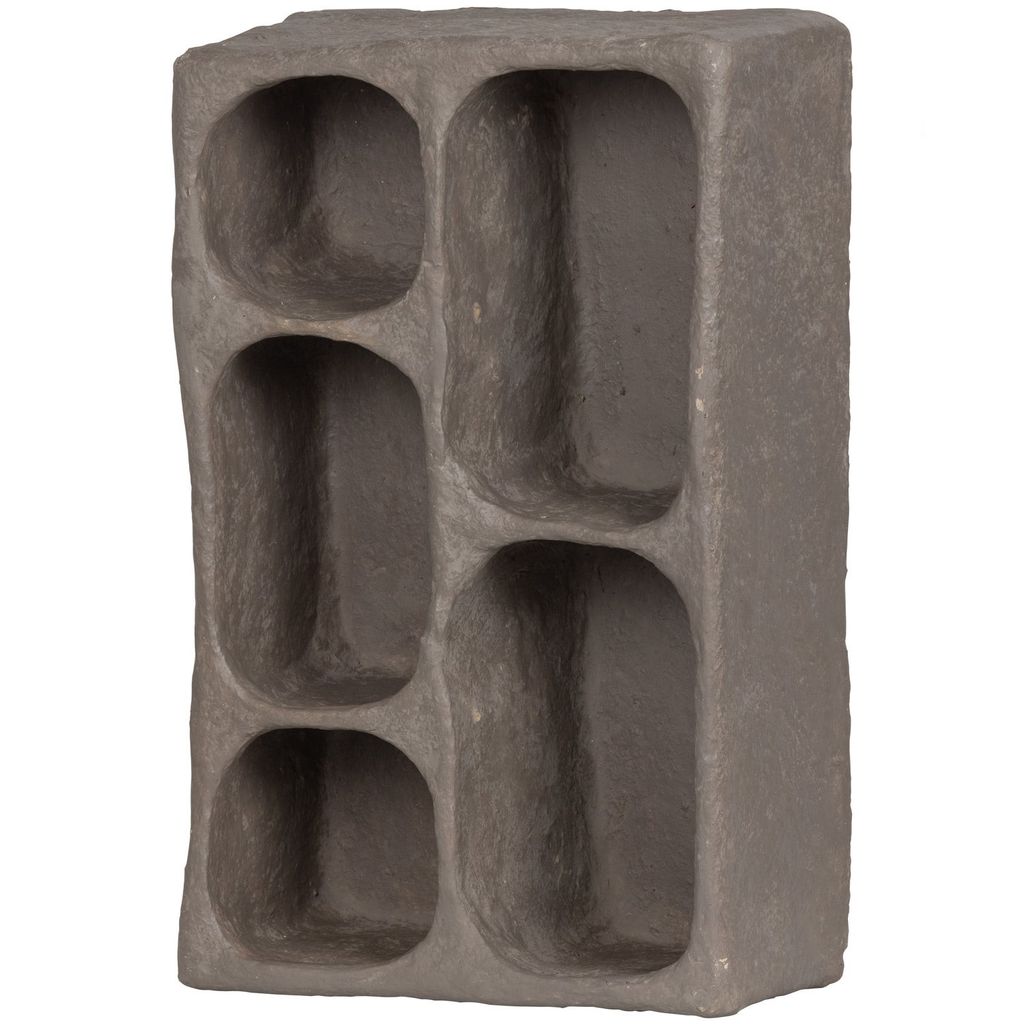 Handgjort väggskåp i papper maché med trendig grå finish. Unikt designad med fem förvaringsfack.