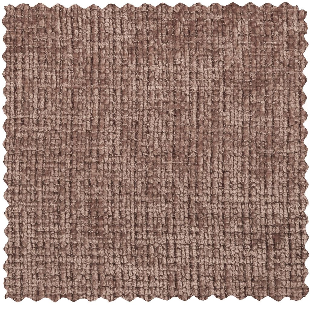 Soffan är klädd i ett mjukt mullvad/rosa Chenille-tyg som ger ett modernt och elegant intryck. Tyget har en subtil glans och en grov struktur som ger en unik känsla.