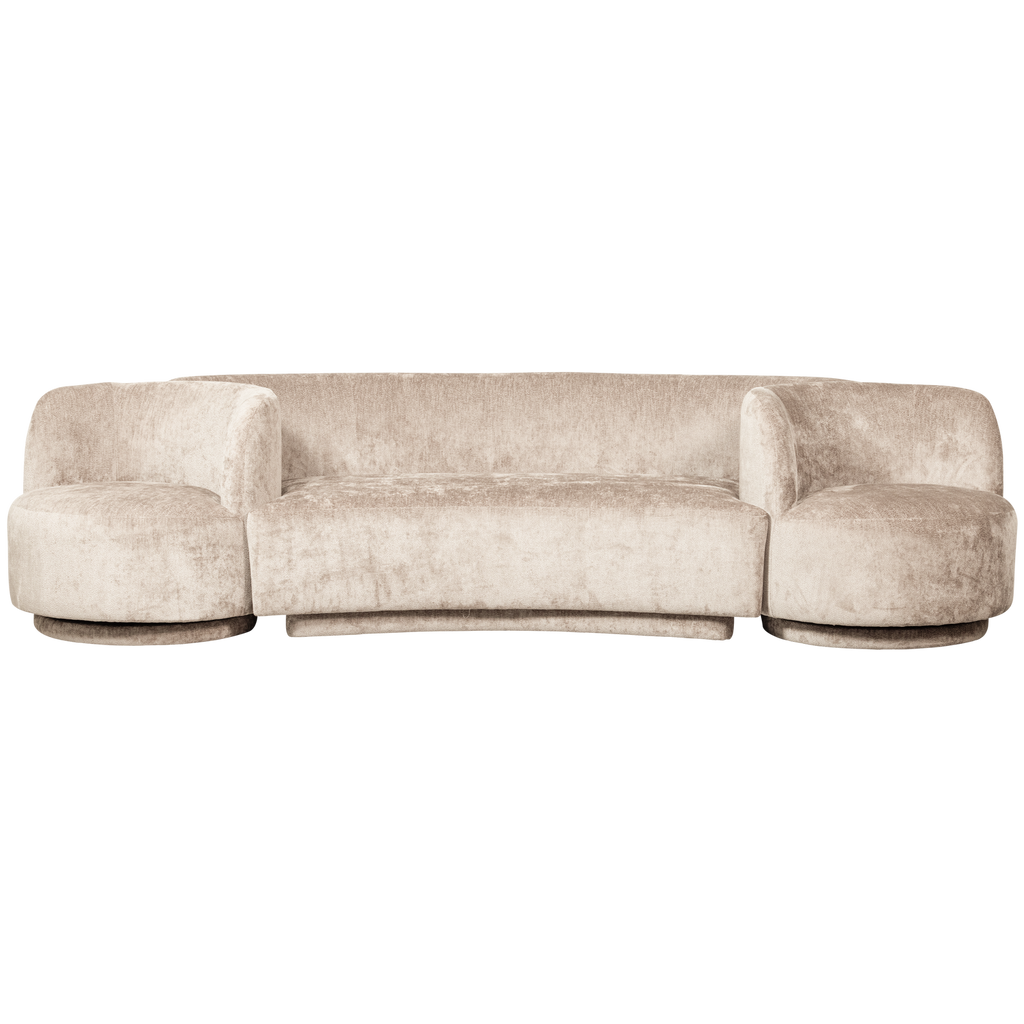 Elegant modulär soffa och fåtöljer i naturlig färg med lyxigt chenilletyg och robust konstruktion. Perfekt för alla inredningar.