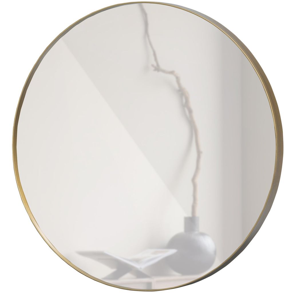 Elegant rund spegel med ett slitstarkt, matt guldjärnsram. Perfekt för hall, vardagsrum eller sovrum för att skapa ett rymligt intryck.