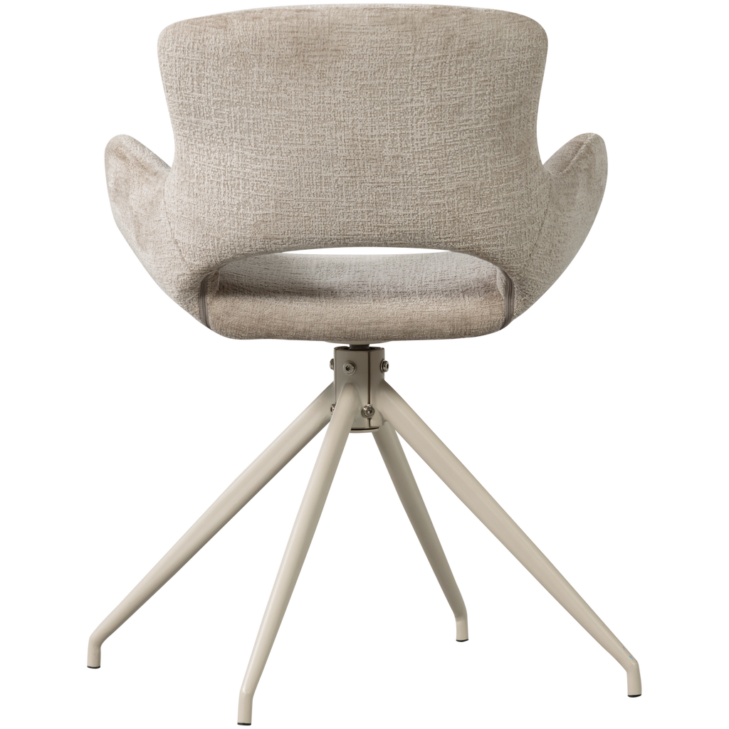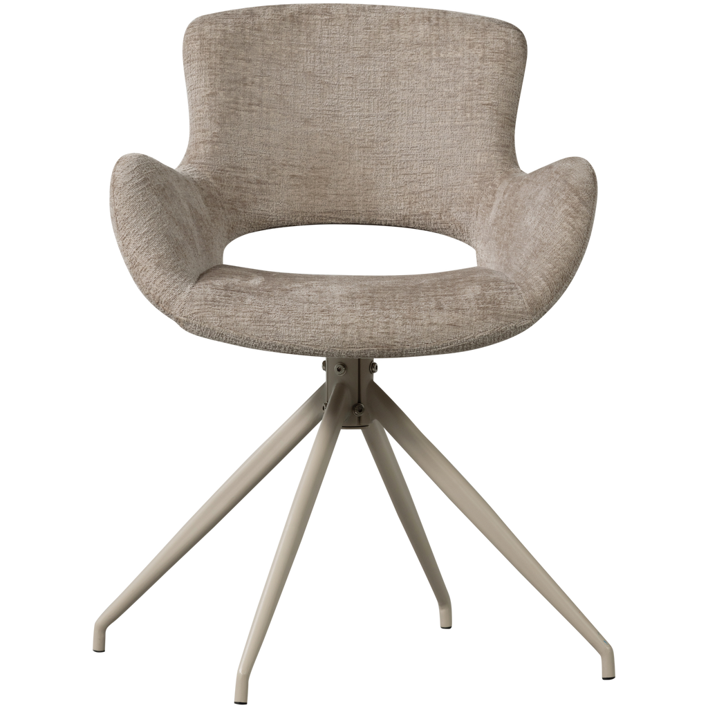 Elegant matstol i sandfärgad sammet med strukturerad yta och svängbart stativ. Perfekt för stil och komfort.