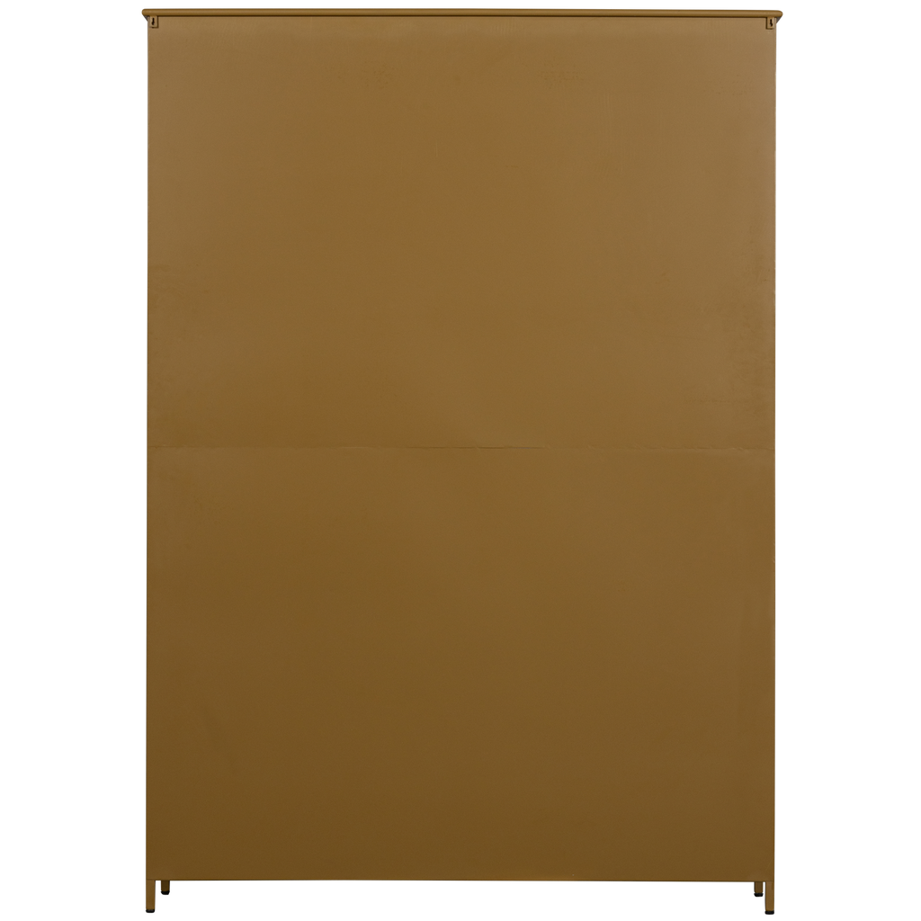Skåpet är tillverkat av högkvalitativt, pulverlackerat järn med en matt finish, vilket ger en sofistikerad och hållbar yta. De fem hyllplanen ger en elegant uppvisning av dina föremål, medan de stora dörrarna säkerställer lättåtkomlighet. Dörrarna mäter 187,5 cm x 43,5 cm och handtagen är 94,5 cm långa, vilket ger en stilren look.