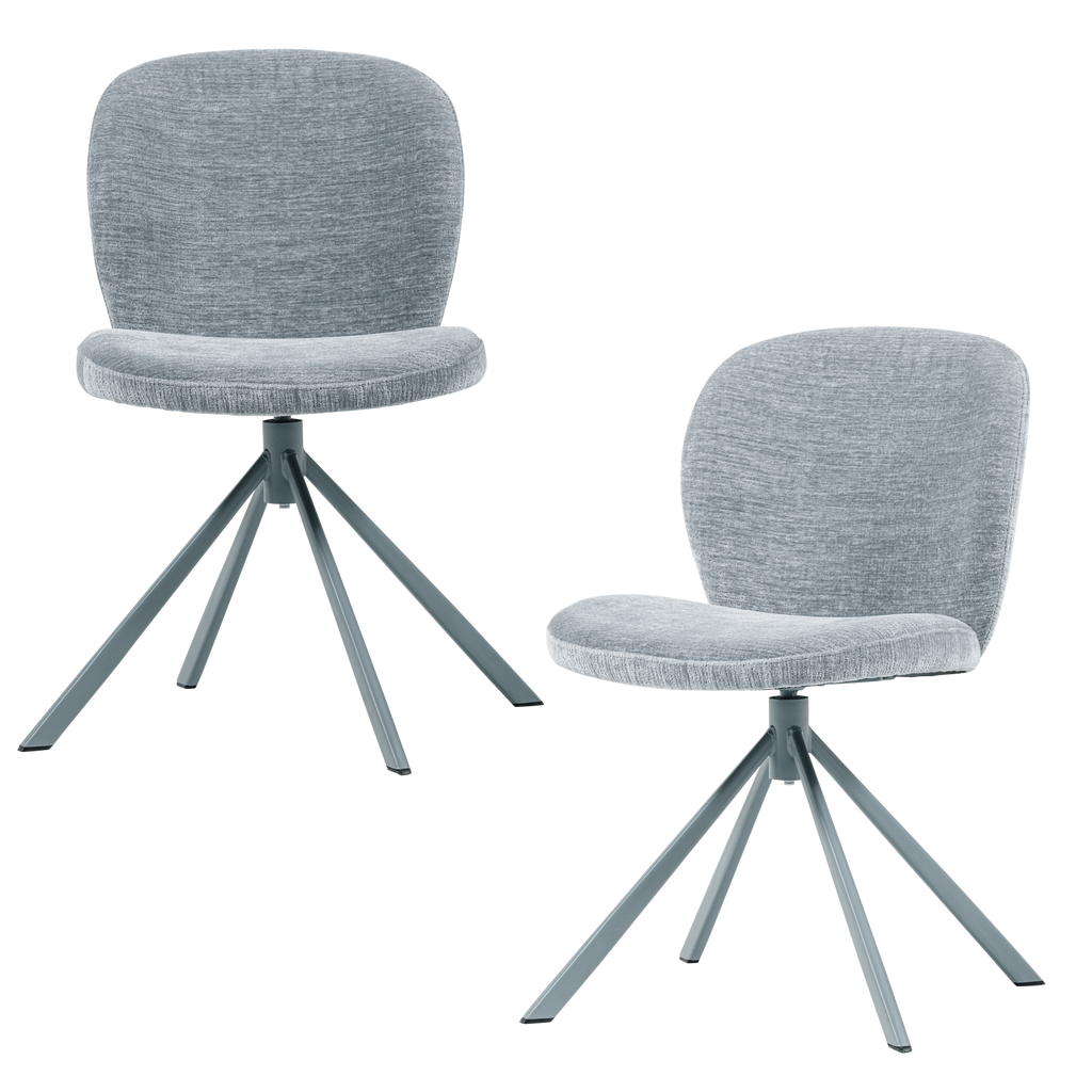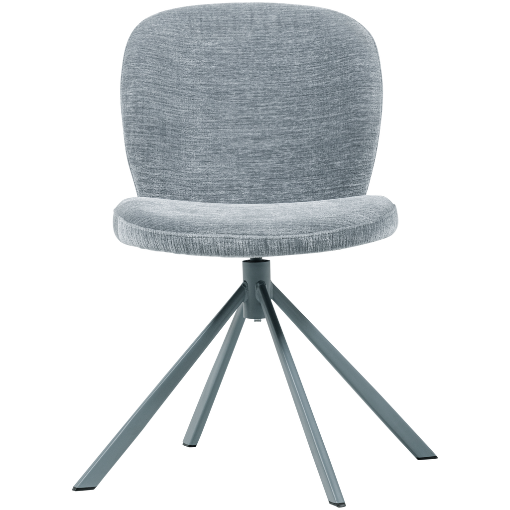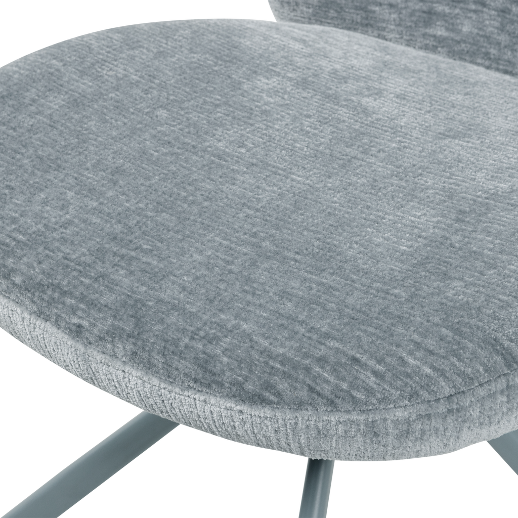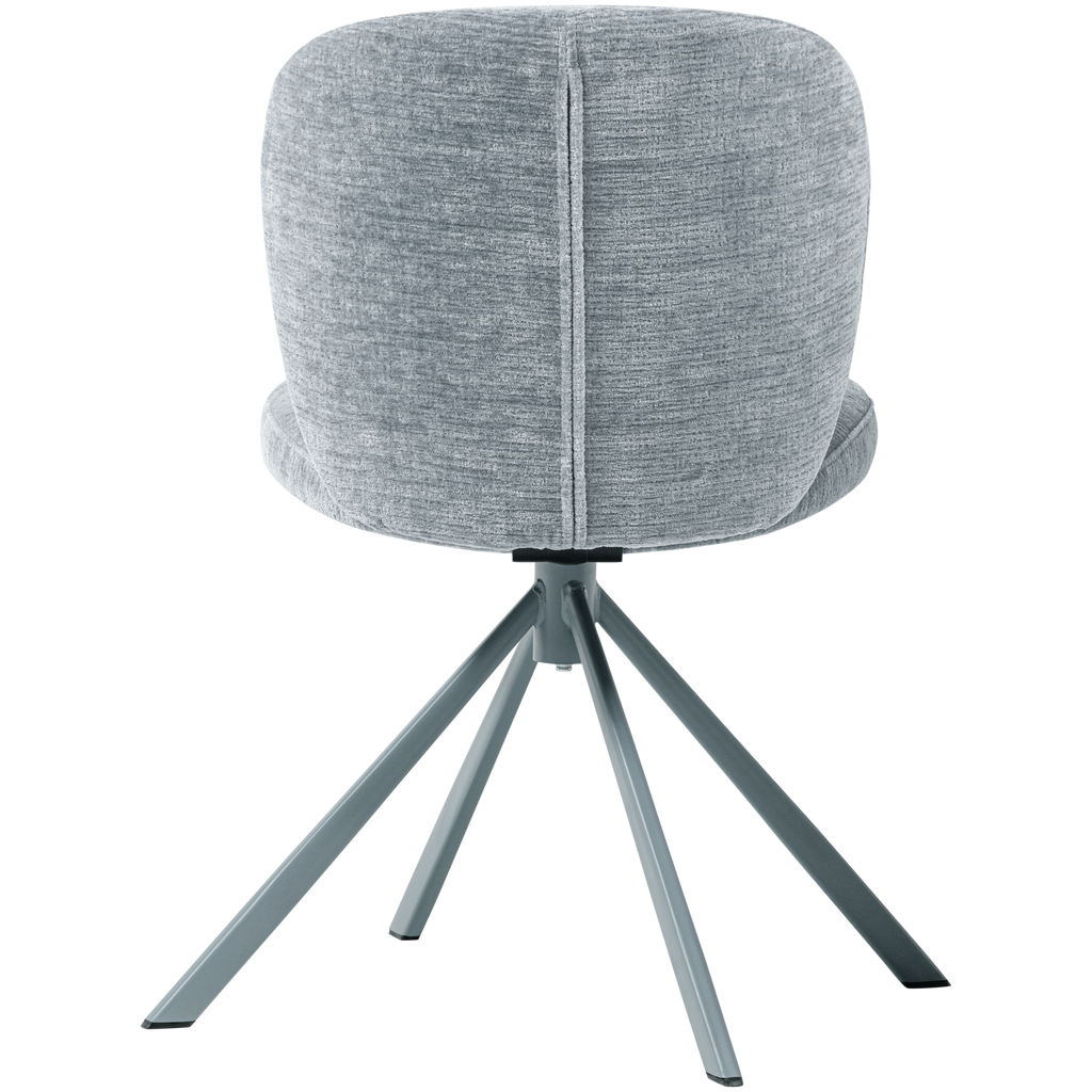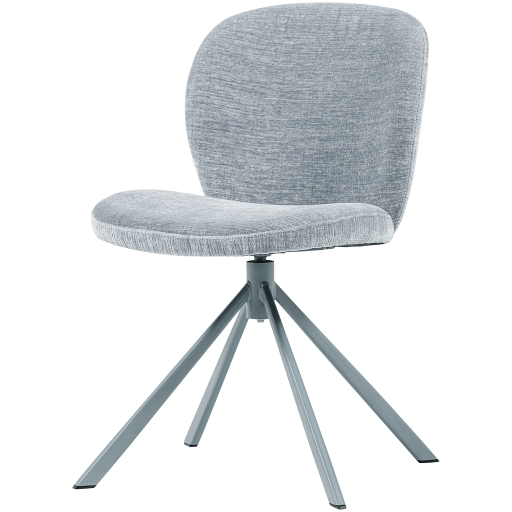 Stilfull och bekväm matstol i mjuk blå chenille med stålunderrede och praktisk snurrfunktion. Perfekt för alla matbord.