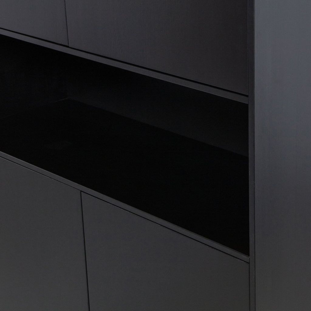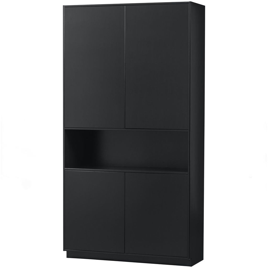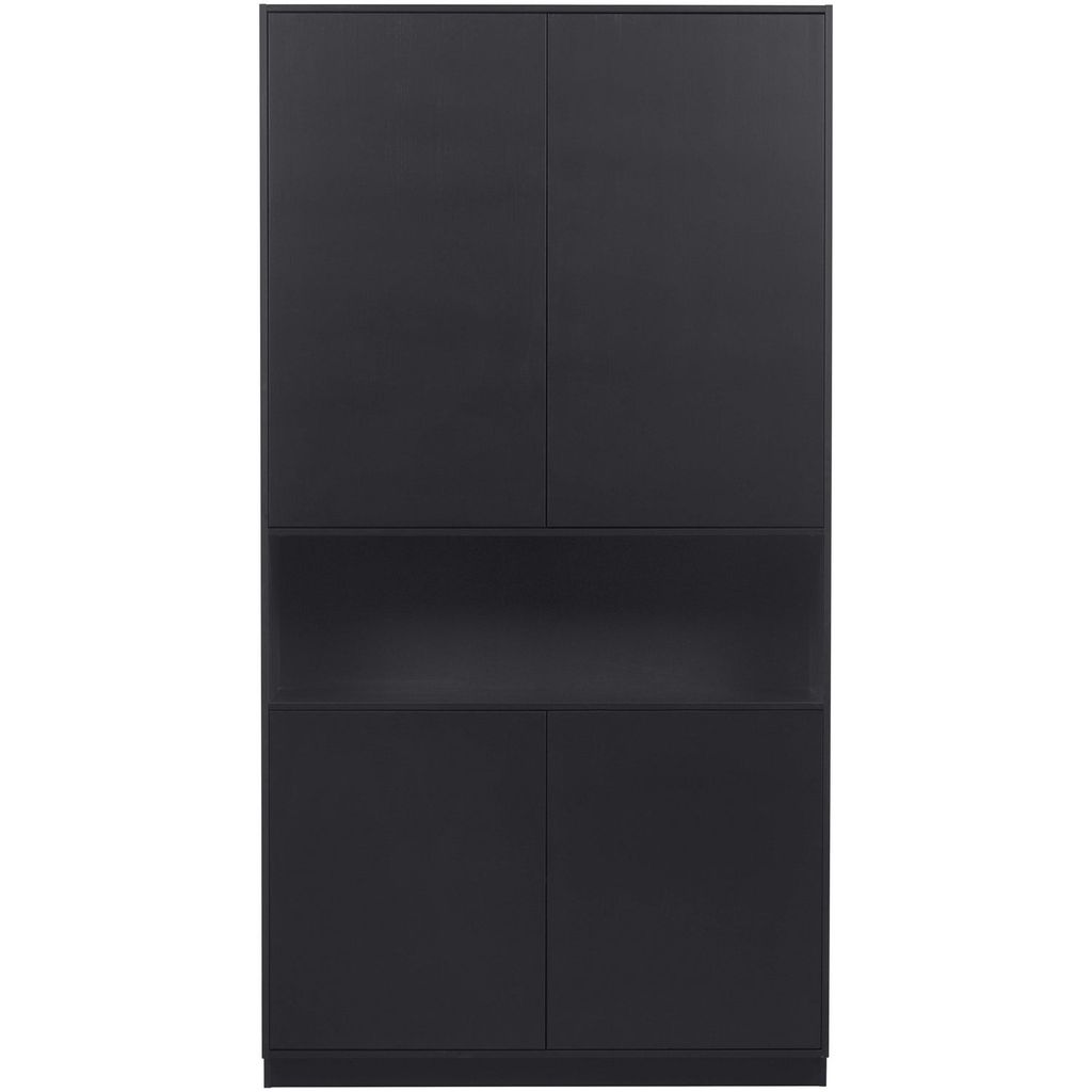 Elegant förvaringsskåp i djup svart från WOOOD, tillverkat i FSC-certifierat massivt grenen. Modern design med push-to-open mekanism.