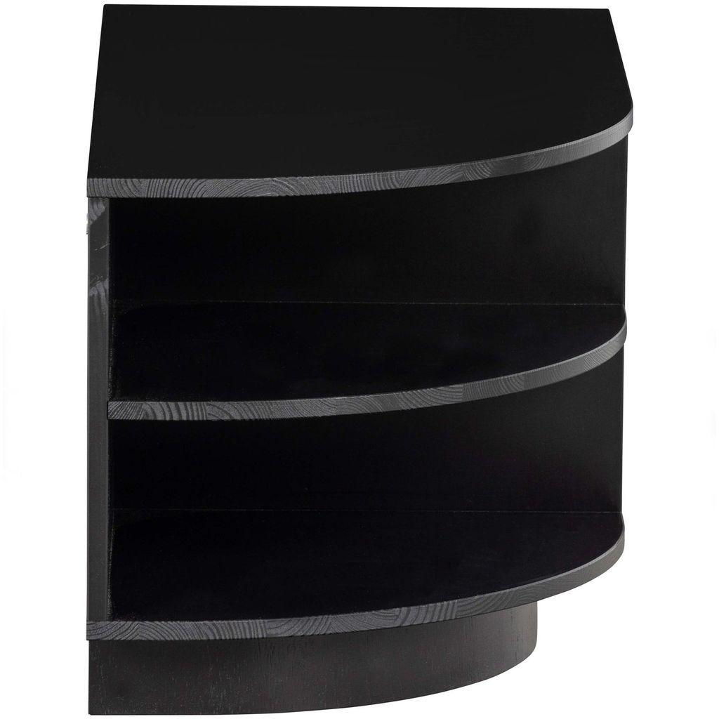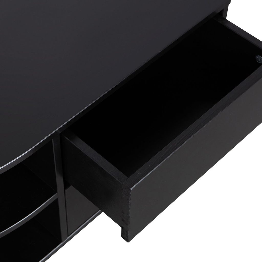 Stilfull och modern TV-möbel i djup svart färg med rundad vänster sida. Tillverkad av hållbart grangren med push-to-open system.