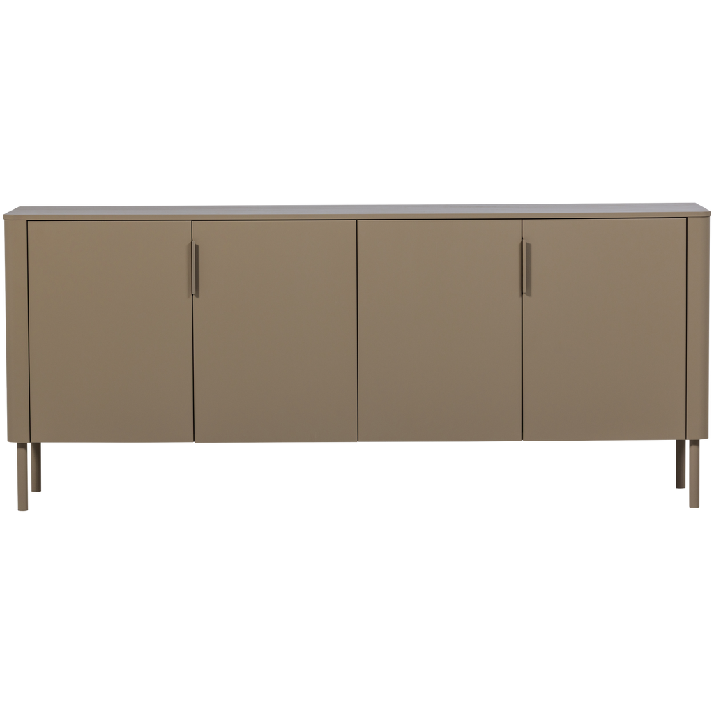 Den lugnande lerfärgen och de raka linjerna ger en modern och sofistikerad känsla. Sidobordet har en höjd på 85 cm, bredd på 201 cm och ett djup på 44 cm, vilket gör det både rymligt och praktiskt. Det är enkelt att montera och levereras i två paket.
