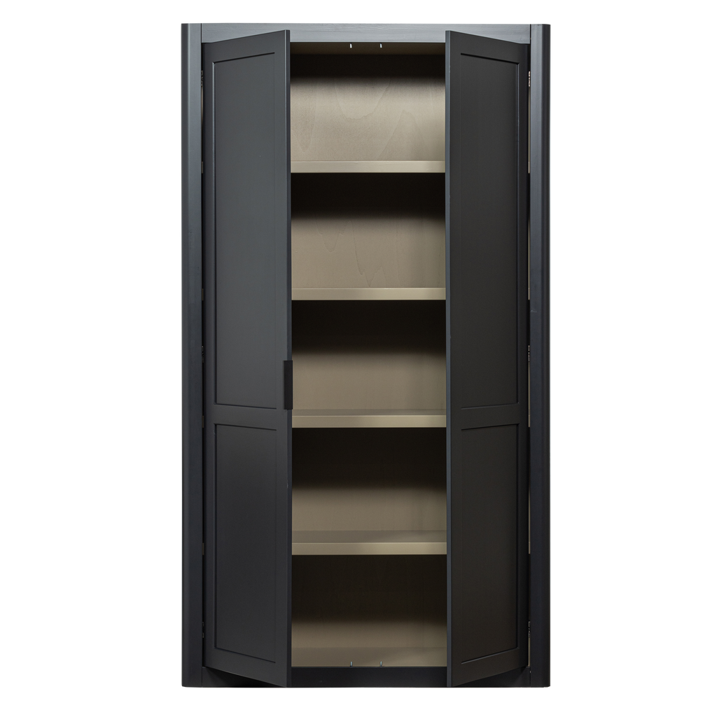 Den inre layouten, med en bredd på 116 cm, höjd på 203 cm och ett djup på 43 cm, kompletteras av hyllor med 4 cm tjocklek, vilket ger optimal organisering. Vår miljövänliga, vattenbaserade lack skyddar träet och gör det enkelt att underhålla. Torka omedelbart upp eventuella fläckar för att bevara möbelns skönhet.