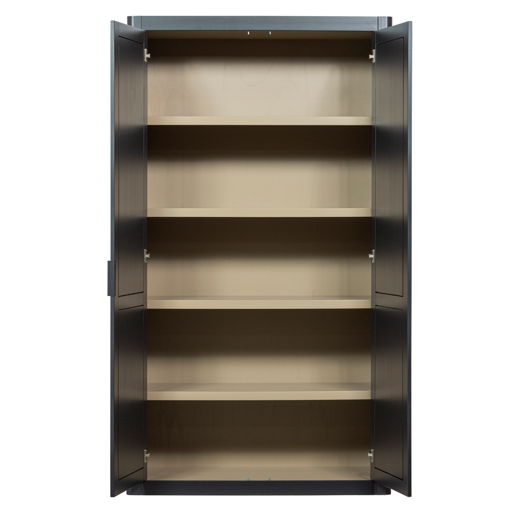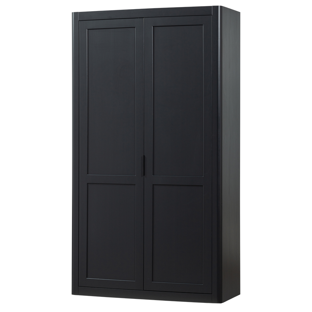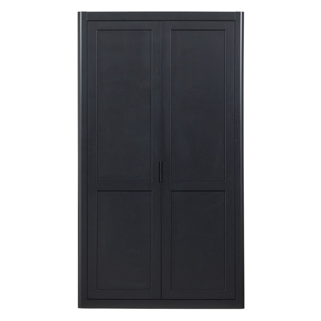 Upplev den tidlösa designen av WOOOD Gunnar Förvaringsskåp, tillverkad av FSC-certifierad furu med en elegant matt svart finish. Detta robusta skåp, med sina mått på 217 cm i höjd, 120 cm i bredd och 48 cm i djup, erbjuder en generös mängd förvaringsutrymme bakom två höga, stängda dörrar.