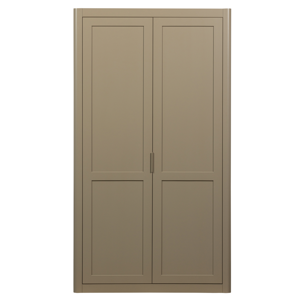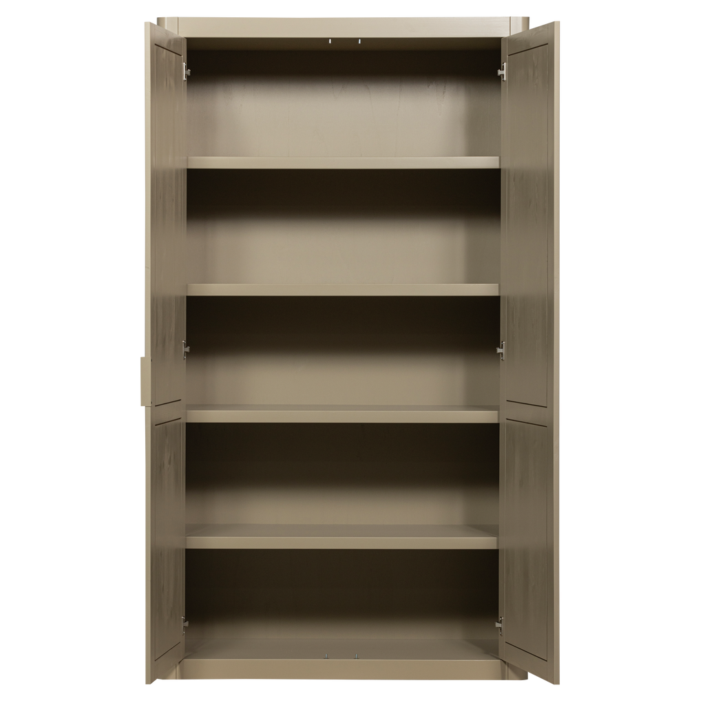 Skåpet har två höga, stängda dörrar som döljer en massiv förvaringskapacitet. Med måtten H 217 cm x B 120 cm x D 48 cm erbjuder detta skåp en generös mängd utrymme för att hålla ordning och reda i ditt hem eller kontor.