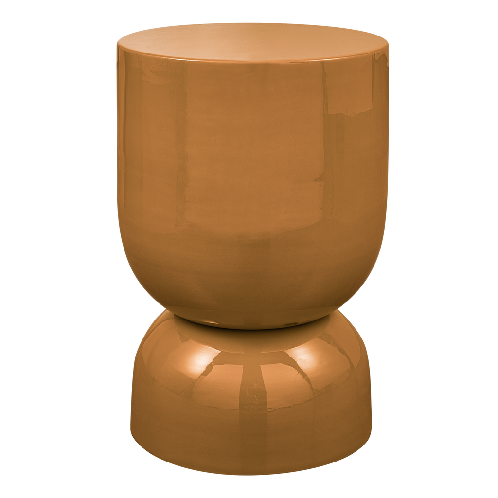 Sidobordet har en jämn, glansig yta som skapar en reflekterande effekt, vilket framgår tydligt av dess kvalitativa metallkonstruktion. Den varma orange färgen bidrar till en inbjudande atmosfär som kompletterar både moderna och retroinspirerade inredningar. Bordet är designat för att passa perfekt som en accent i vardagsrummet, bredvid soffan eller som ett stilfullt komplement i sovrummet.