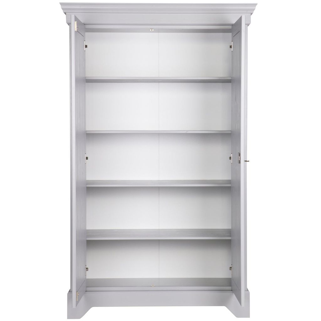 Med måtten 191 cm i höjd, 118 cm i bredd och 47 cm i djup, har hyllan fyra breda hyllplan som erbjuder gott om förvaringsutrymme. De två låsbara dörrarna ger extra säkerhet för dina föremål. Montering är enkel tack vare de tydliga instruktionerna som medföljer. För ökad säkerhet rekommenderas att använda det medföljande väggfästet och filtglidare för att skydda golvet.