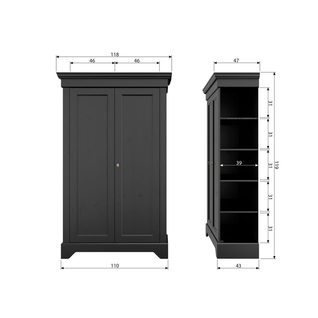 Detta eleganta Isabel brocante skåp från WOOOD kombinerar tidlös design med praktisk funktionalitet. Tillverkat av robust, FSC-certifierat grenen, erbjuder det en miljövänlig lösning för förvaring. Den djupa, svarta finishen ger en modern känsla till ditt hem, samtidigt som skåpets klassiska element bibehålls.
