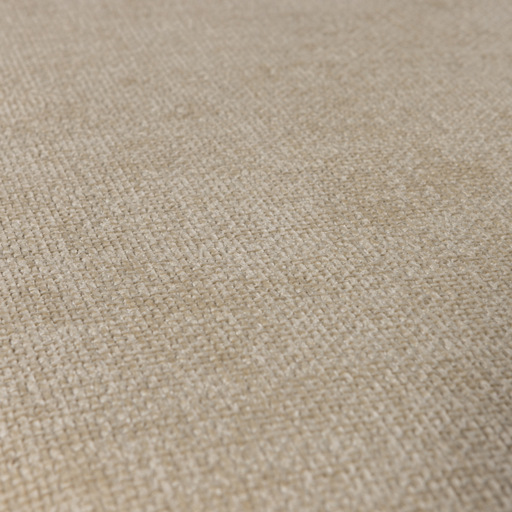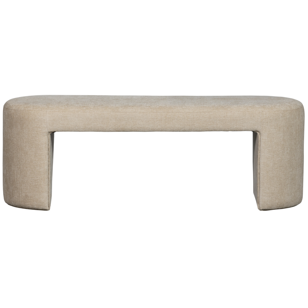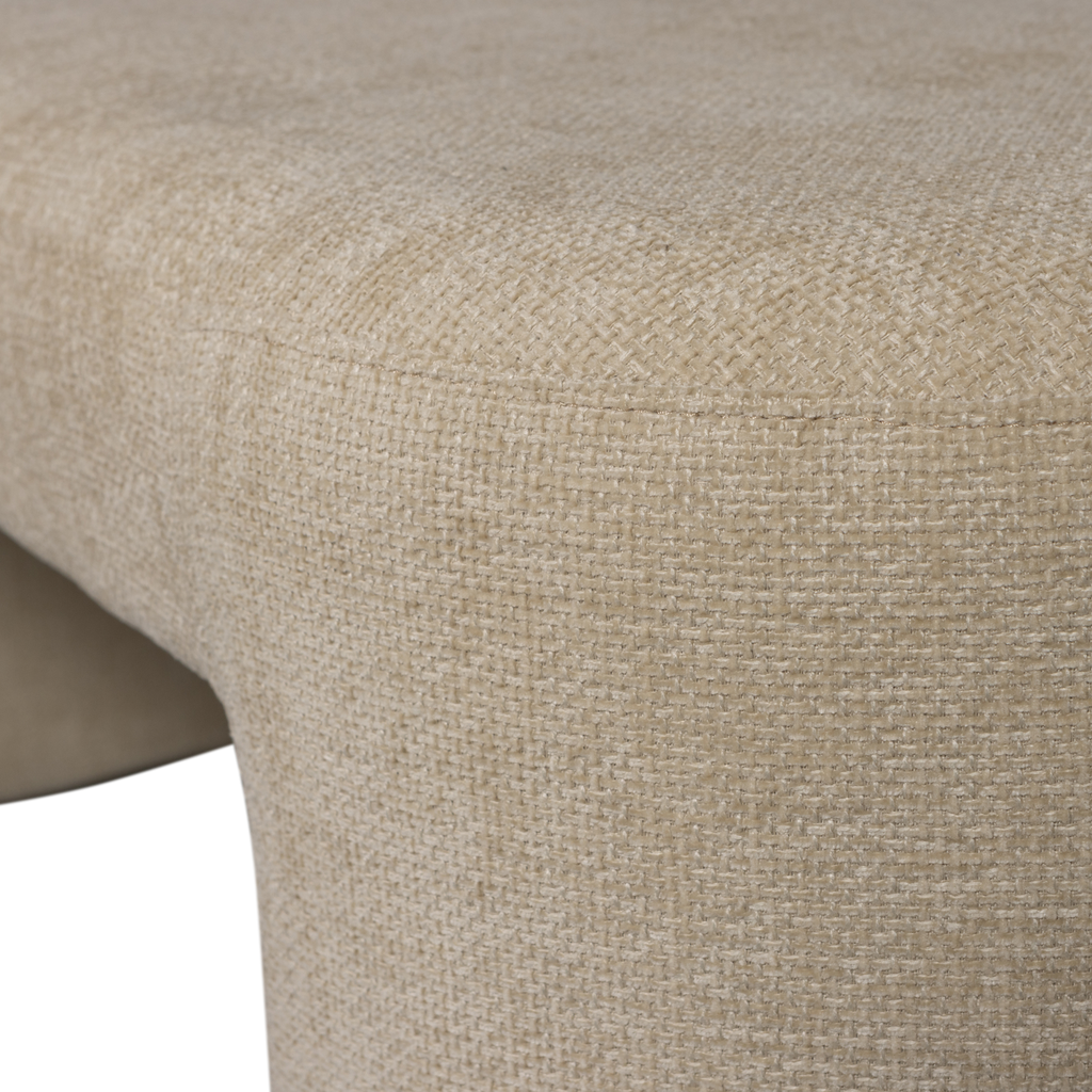 Elegant och funktionell chenilleklädd bänk i naturell ton med robust konstruktion och mjuk textur.