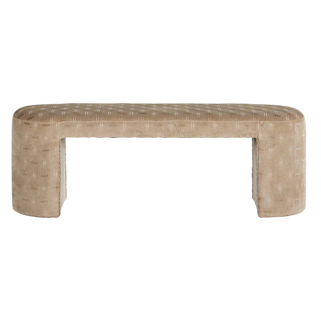 Stilfull bänk i naturligt randigt mönster. Perfekt för hall eller sovrum med slitstarkt tyg i 100% polyester.