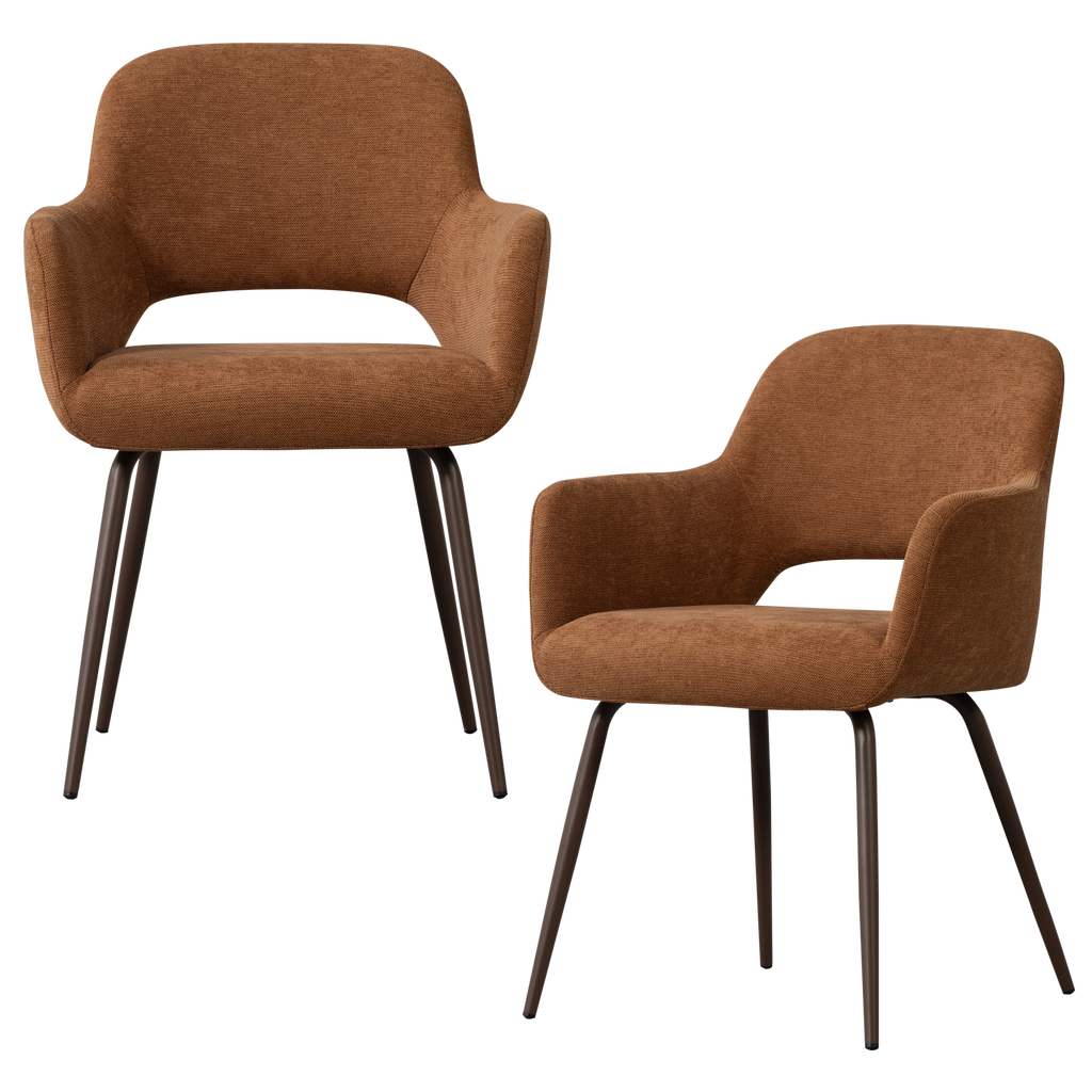 Upptäck den eleganta WOOOD Jenny matstol, en perfekt blandning av stil och komfort för ditt hem. Denna stol är klädd med mjukt vävd brun tyg, tillverkat av 100% polyester, vilket ger en subtil touch till din matsal. Den omsorgsfullt avrundade designen och det stabila ryggstödet erbjuder exceptionell komfort, vilket gör den idealisk för långa, avslappnade middagar.