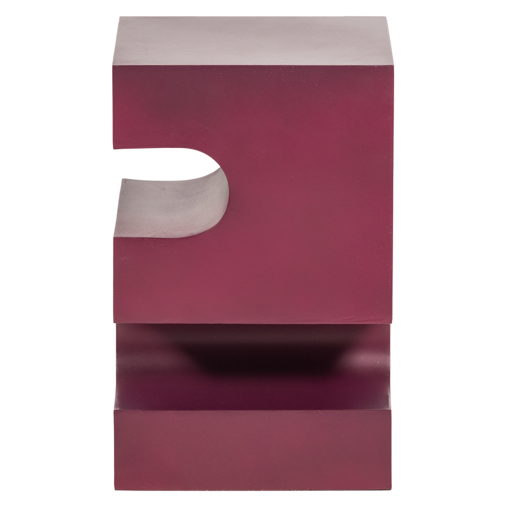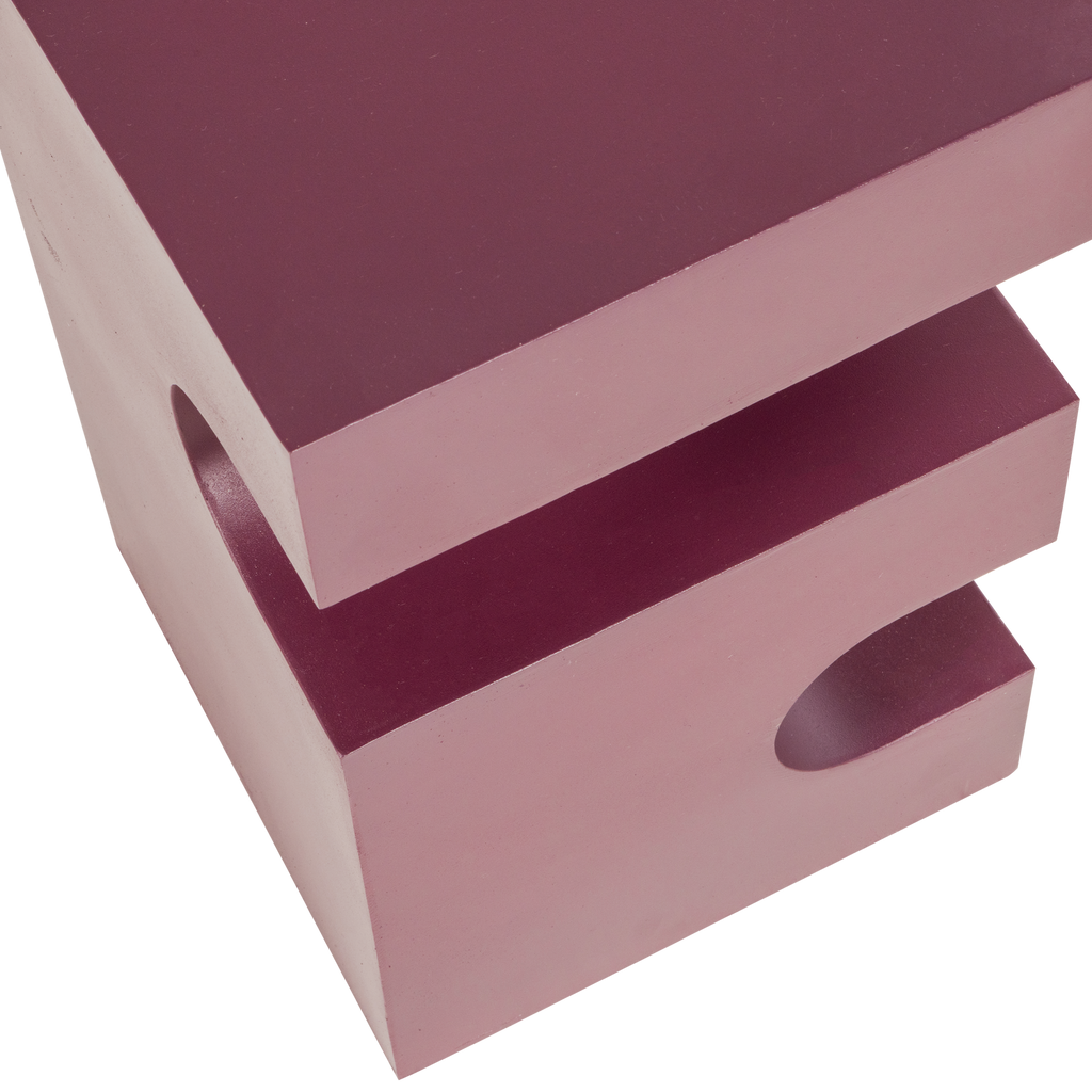 Stilrent sidobord i lila/brun metall med geometrisk form och pulverlackerad yta som passar perfekt i varje hem.