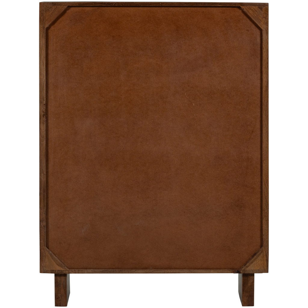 Skåpet är utrustat med två glashyllor som ger gott om utrymme för att visa upp dina vackraste föremål, från serviser till hemtillbehör. Varje skåp är unikt tack vare mangoträdets naturliga ådringar och färgvariationer.