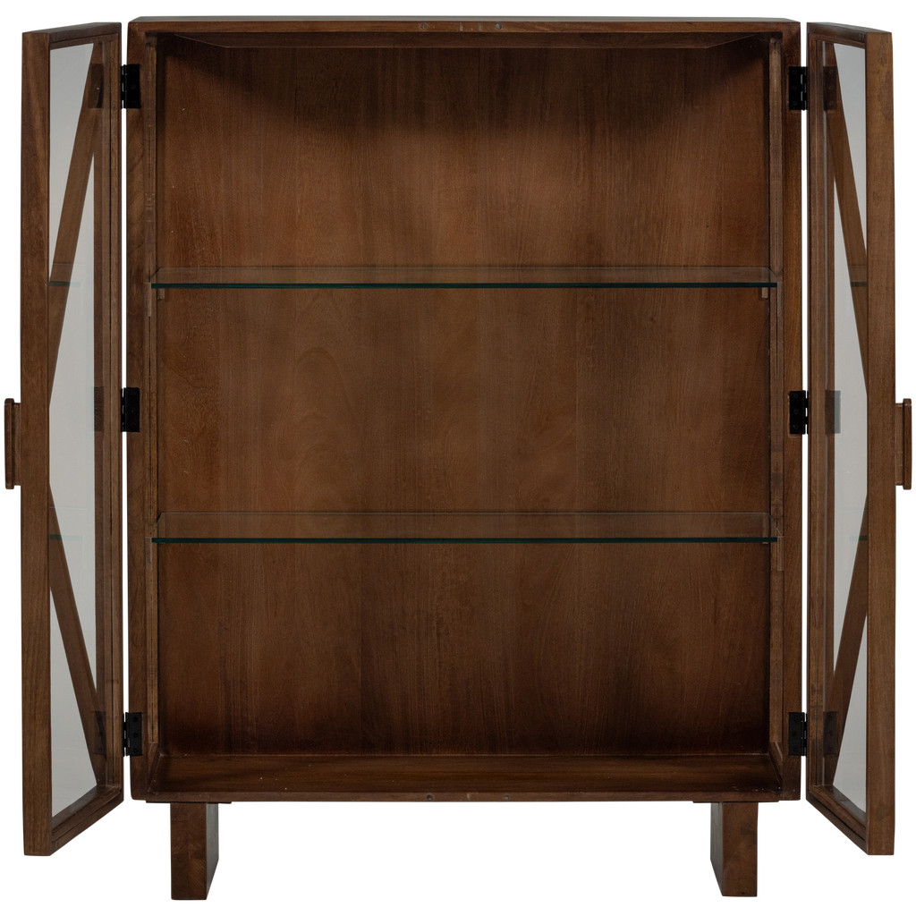 Elegant vitrinskåp i hållbart mangoträ med glasdetaljer. Perfekt för att visa upp dina vackraste föremål och ge rummet en inbjudande känsla.
