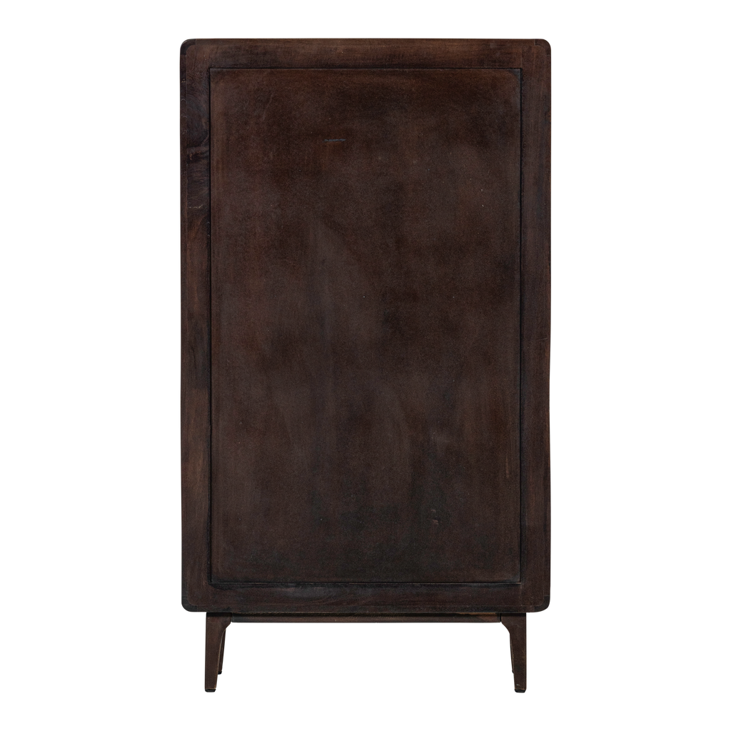 Den djupa, mörkbruna färgen på mangoträet ger en varm atmosfär. För att bevara skåpets skönhet, torka av med en lätt fuktad trasa och undvik aggressiva rengöringsmedel.