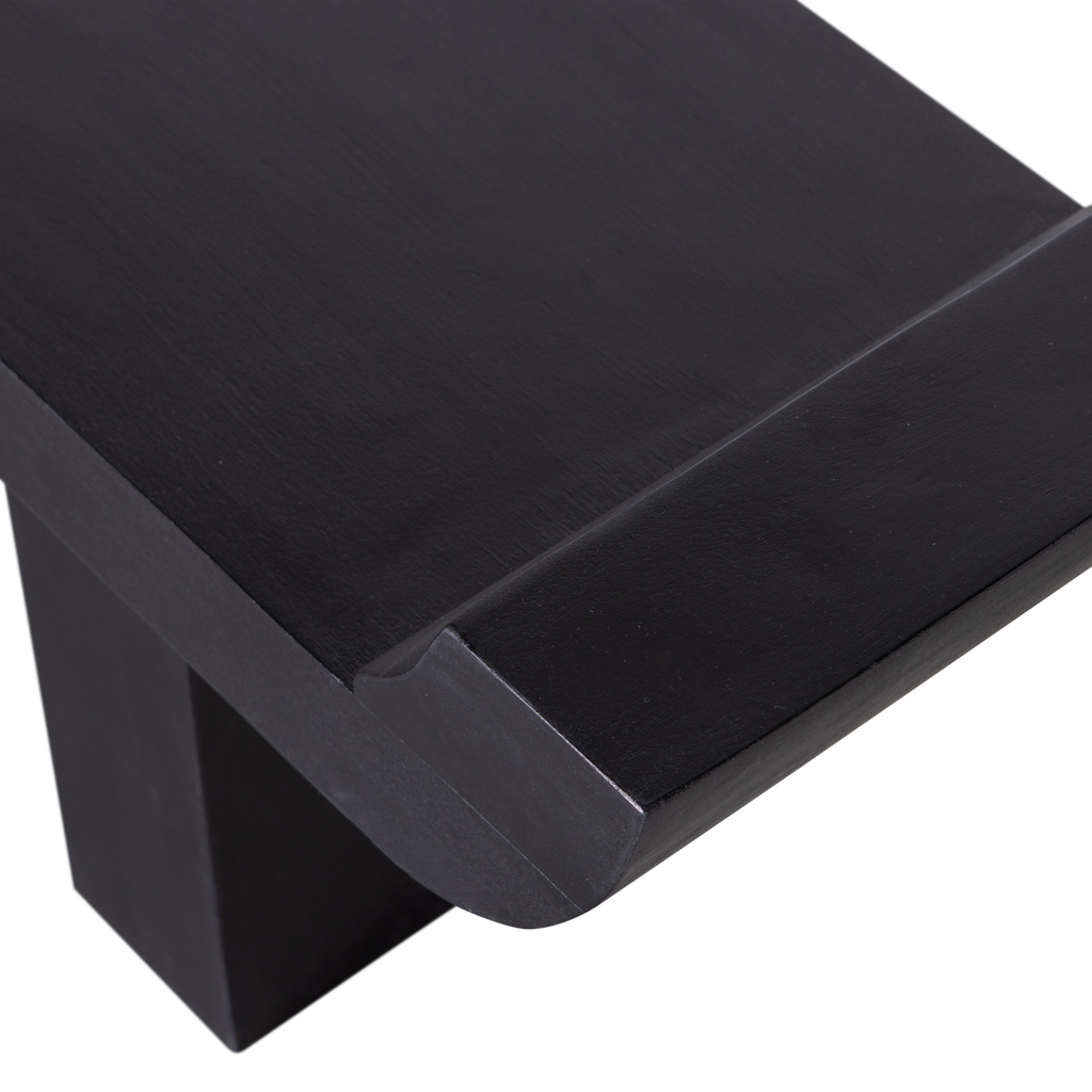 Stilren bänk i svart mangoträ med unika uppstående kanter och robust konstruktion. Perfekt för modern inredning.
