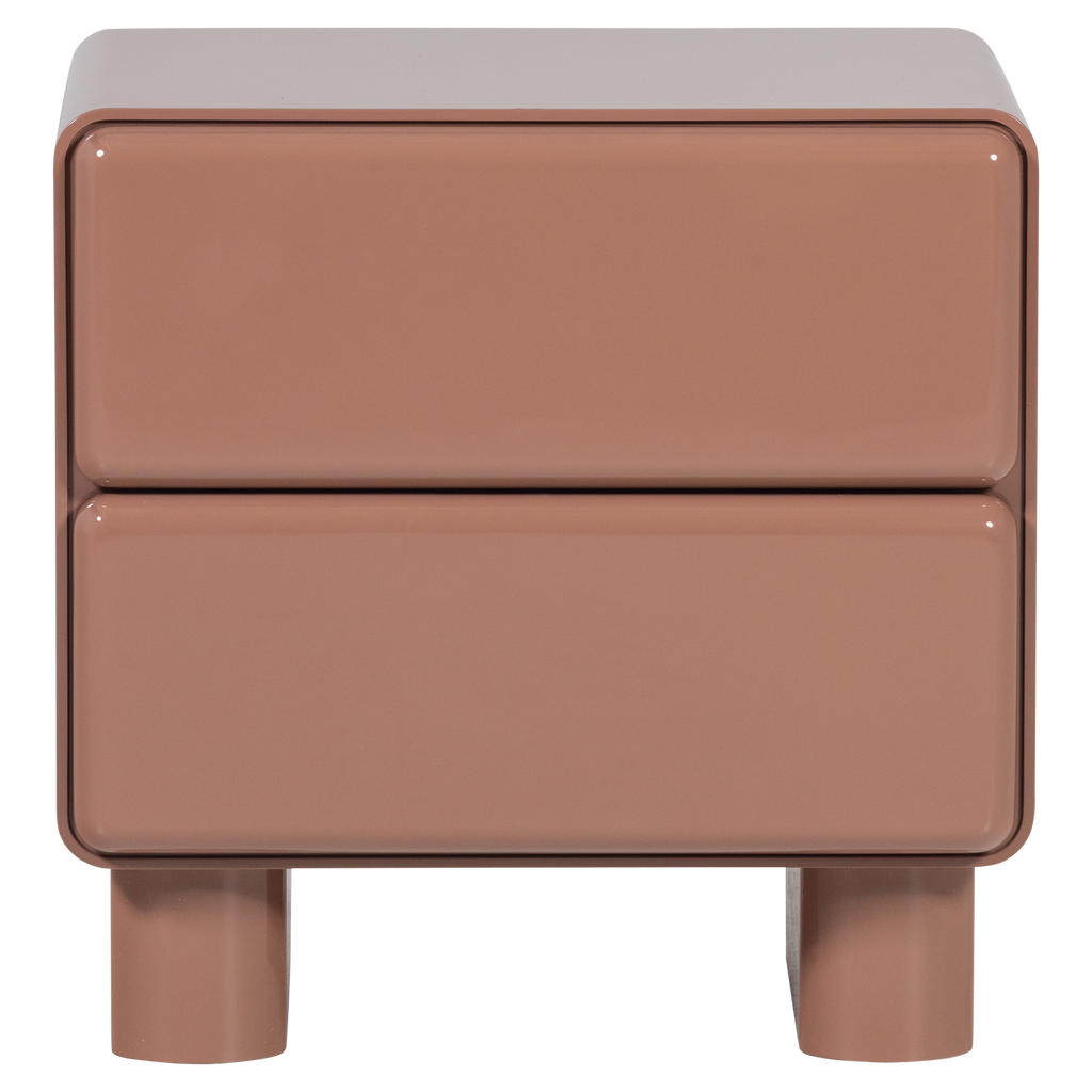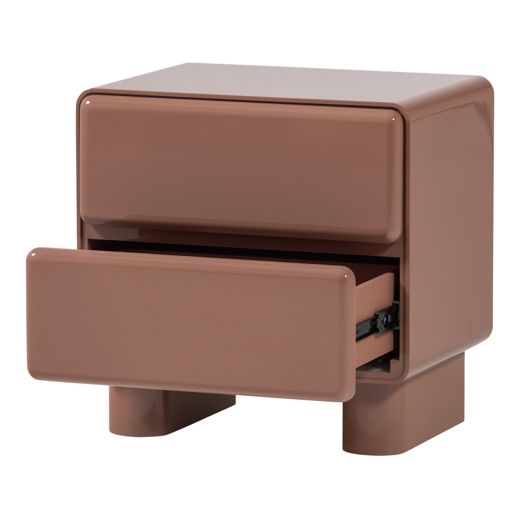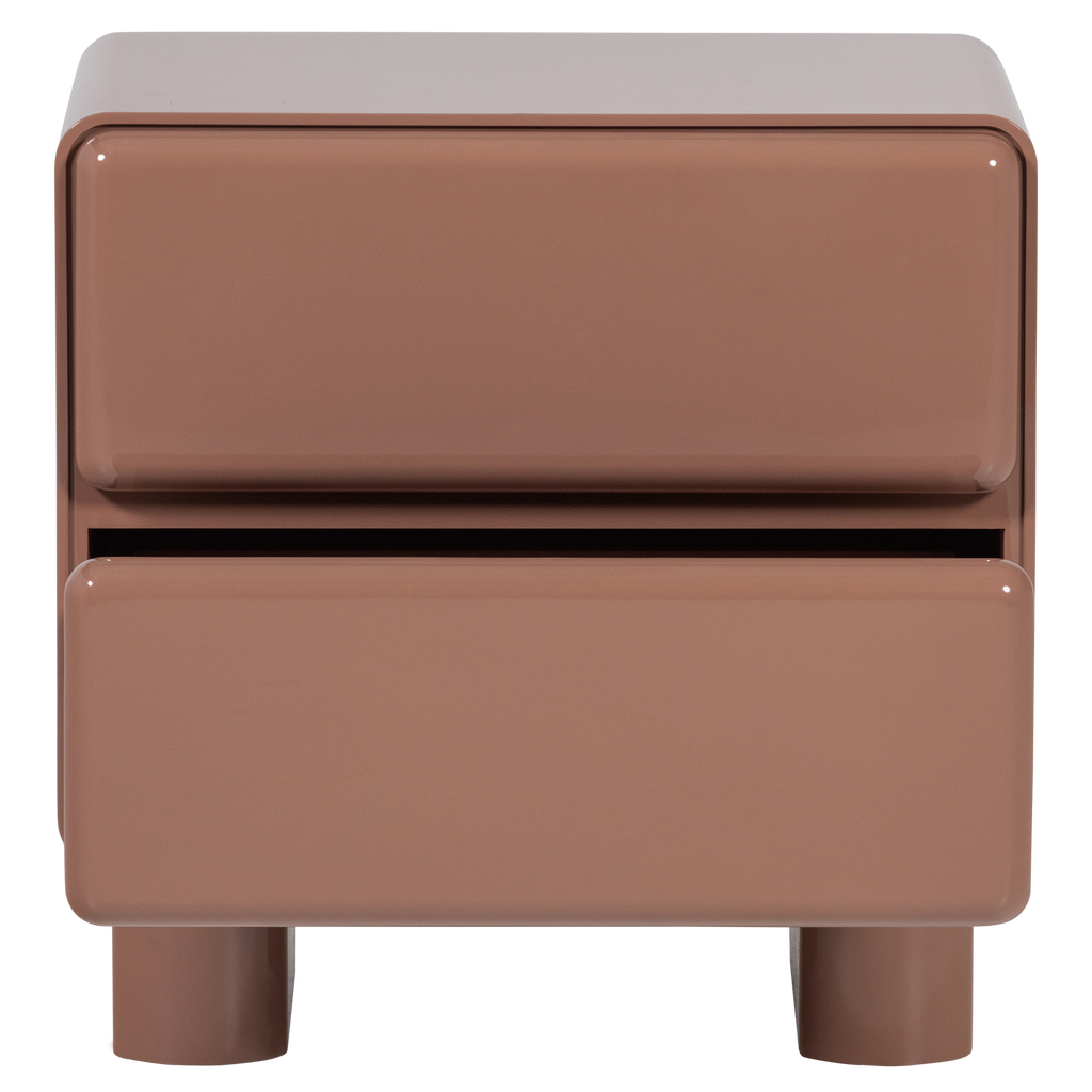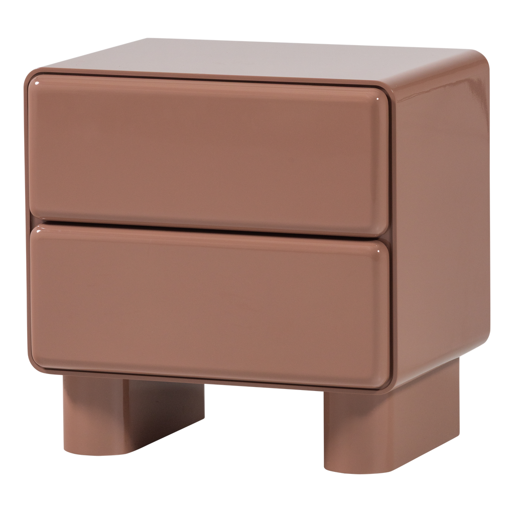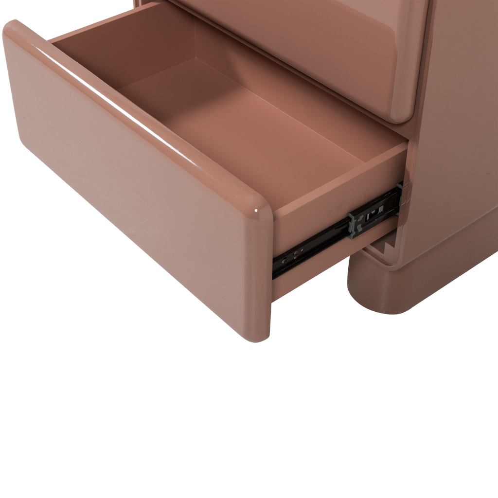 Elegant byrå/nattduksbord i högglans MDF med rundade hörn och gammalrosa färg. Perfekt för sovrum och hall.