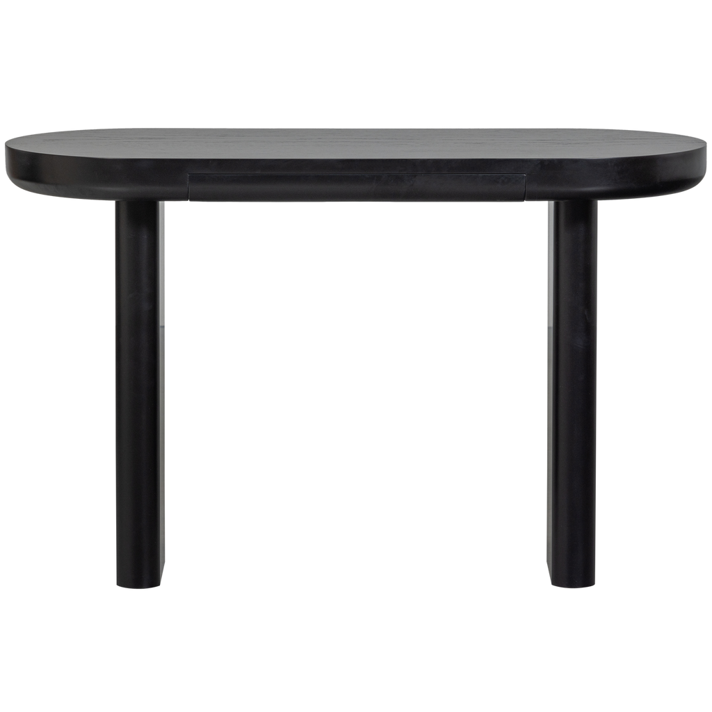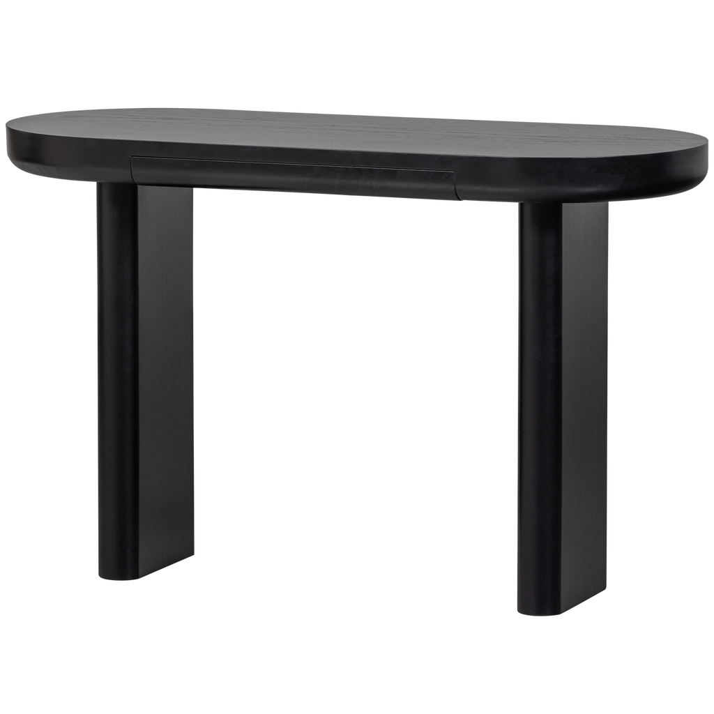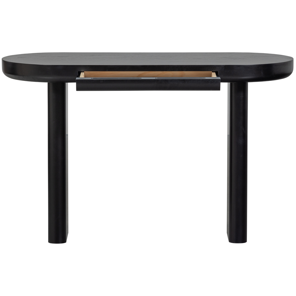 Elegant skrivbord från WOOOD med svart faner, minimalistisk design och utdragbar låda för praktisk förvaring.