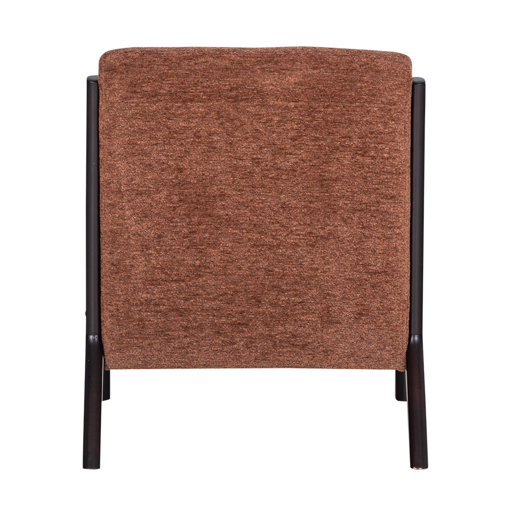 Elegant fåtölj med retrodesign och mjukt brunt chenilletyg. Perfekt för mysig atmosfär och olika inredningsstilar.