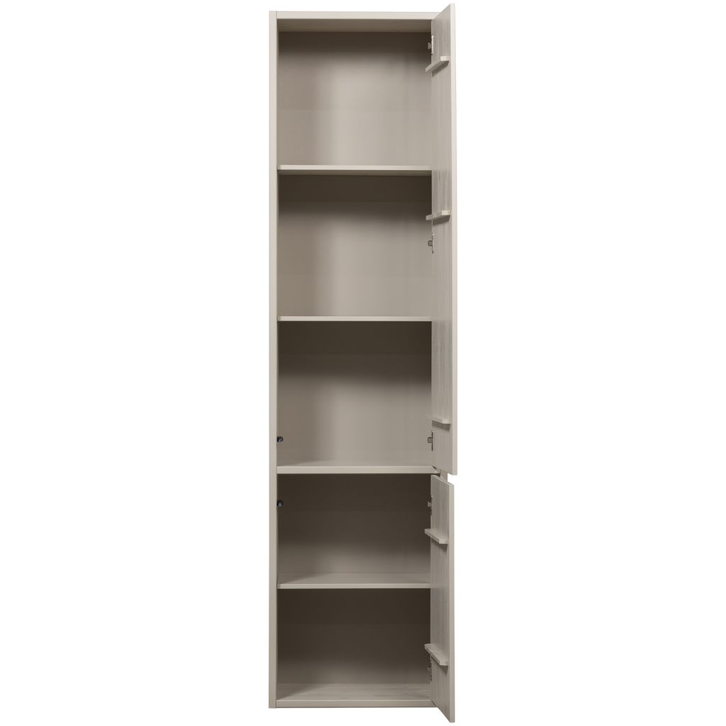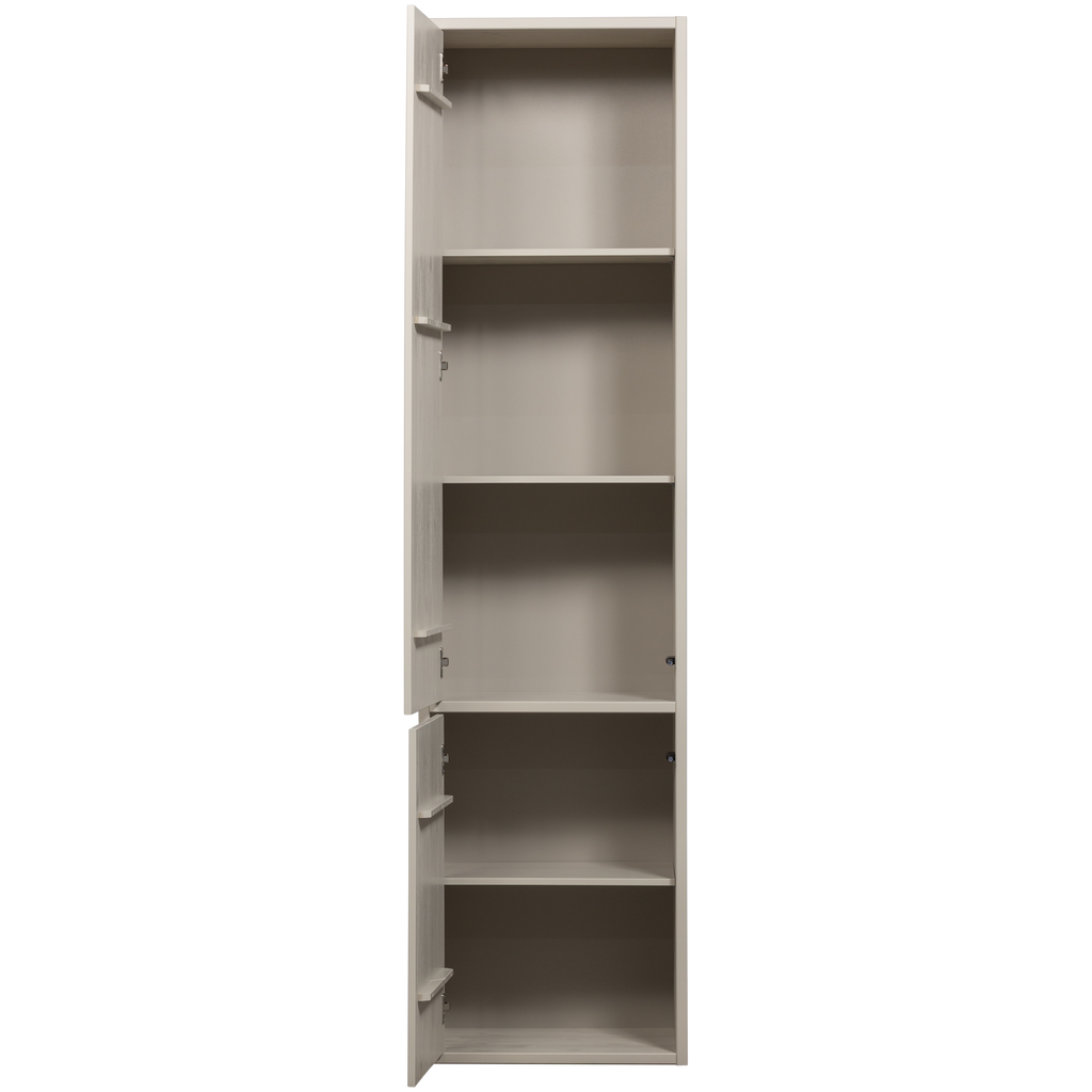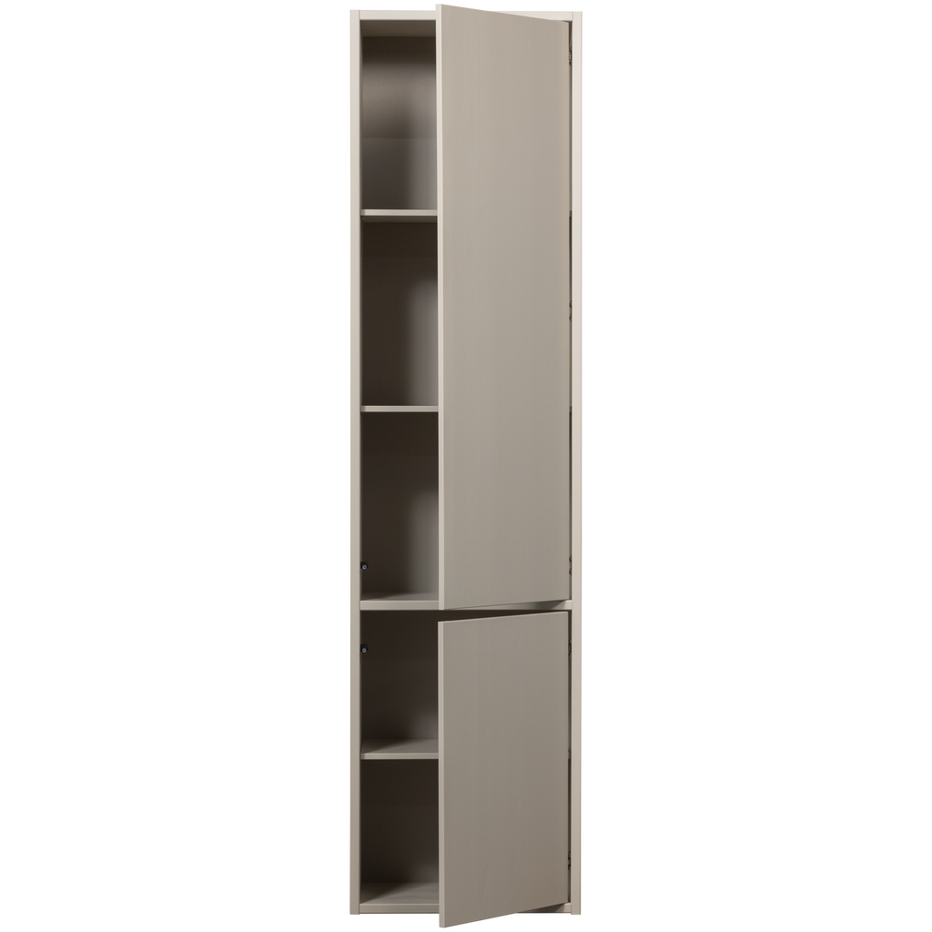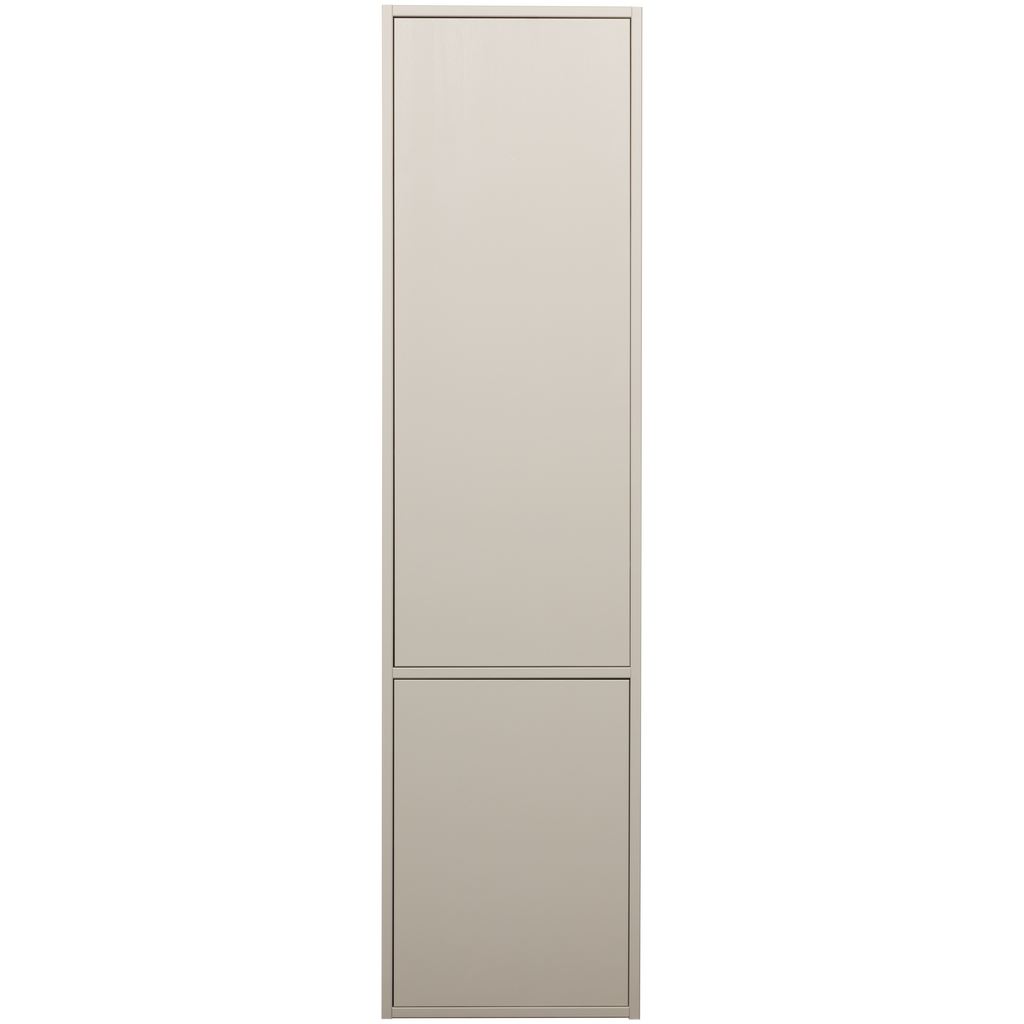 Upptäck WOOOD Meggy Smalt Förvaringsskåp, den perfekta lösningen för ditt moderna hem. Tillverkat av naturlig furu, detta skåp kombinerar funktionalitet med estetisk elegans. Med sin subtila dammfärg smälter det enkelt in i alla interiörer. De måttfulla dimensionerna på H 215 cm x B 55 cm x D 40 cm erbjuder generöst förvaringsutrymme bakom de två push-to-open dörrarna.