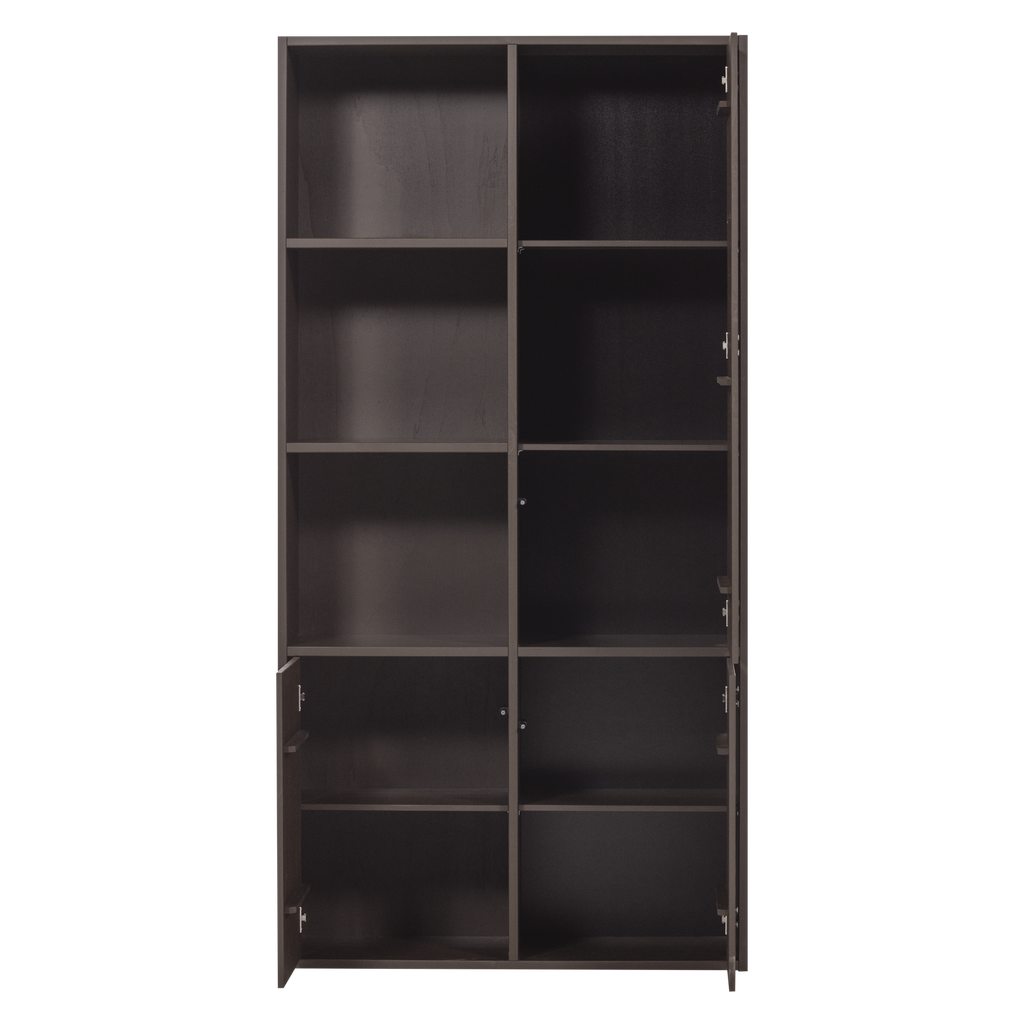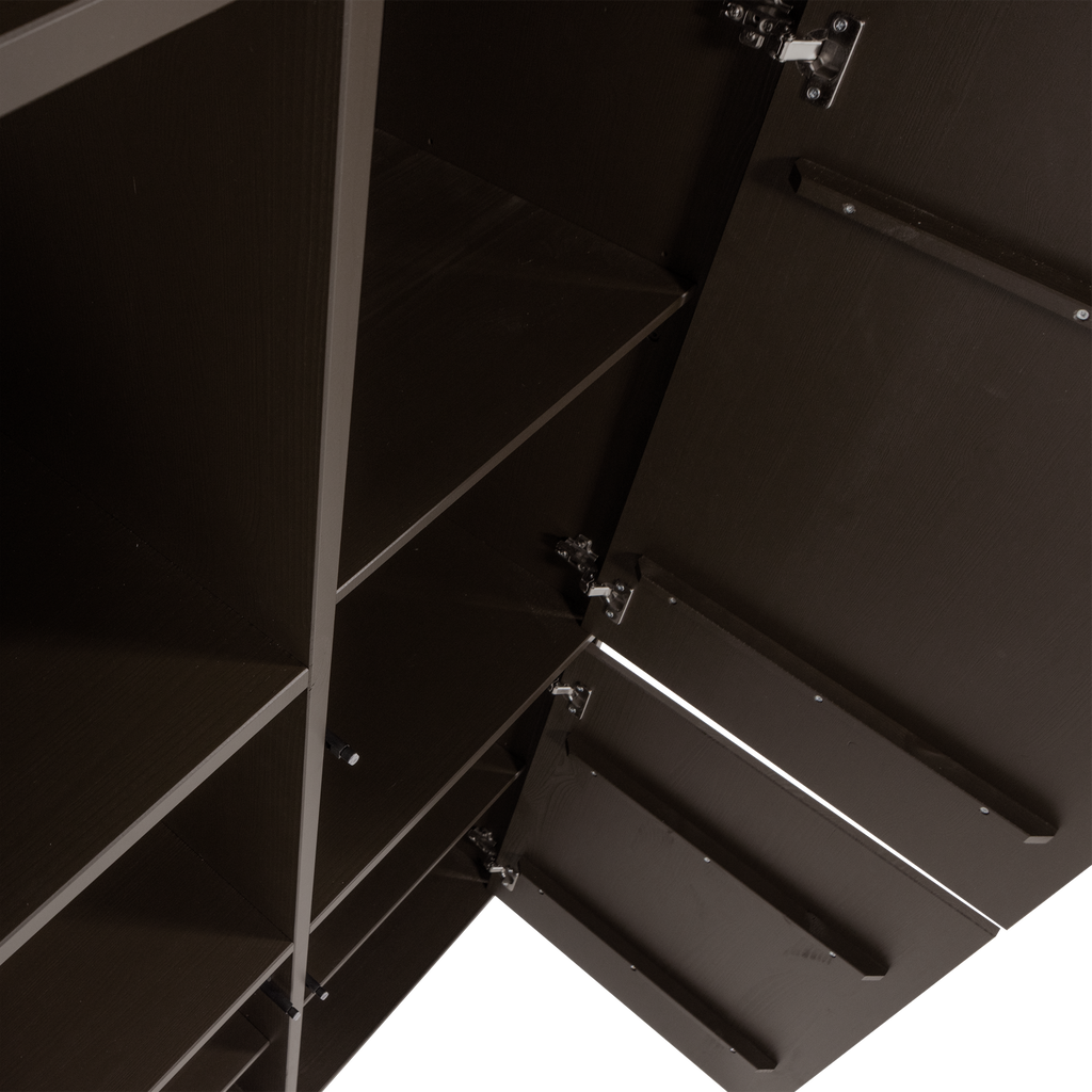 Detta skåp är utformat för att passa perfekt i olika utrymmen och erbjuder både öppna och dolda förvaringslösningar. På den högra sidan finns tre öppna fack för att visa upp dekorativa föremål, böcker eller andra skatter, medan vänstersidan har en längre dörr för dold förvaring.