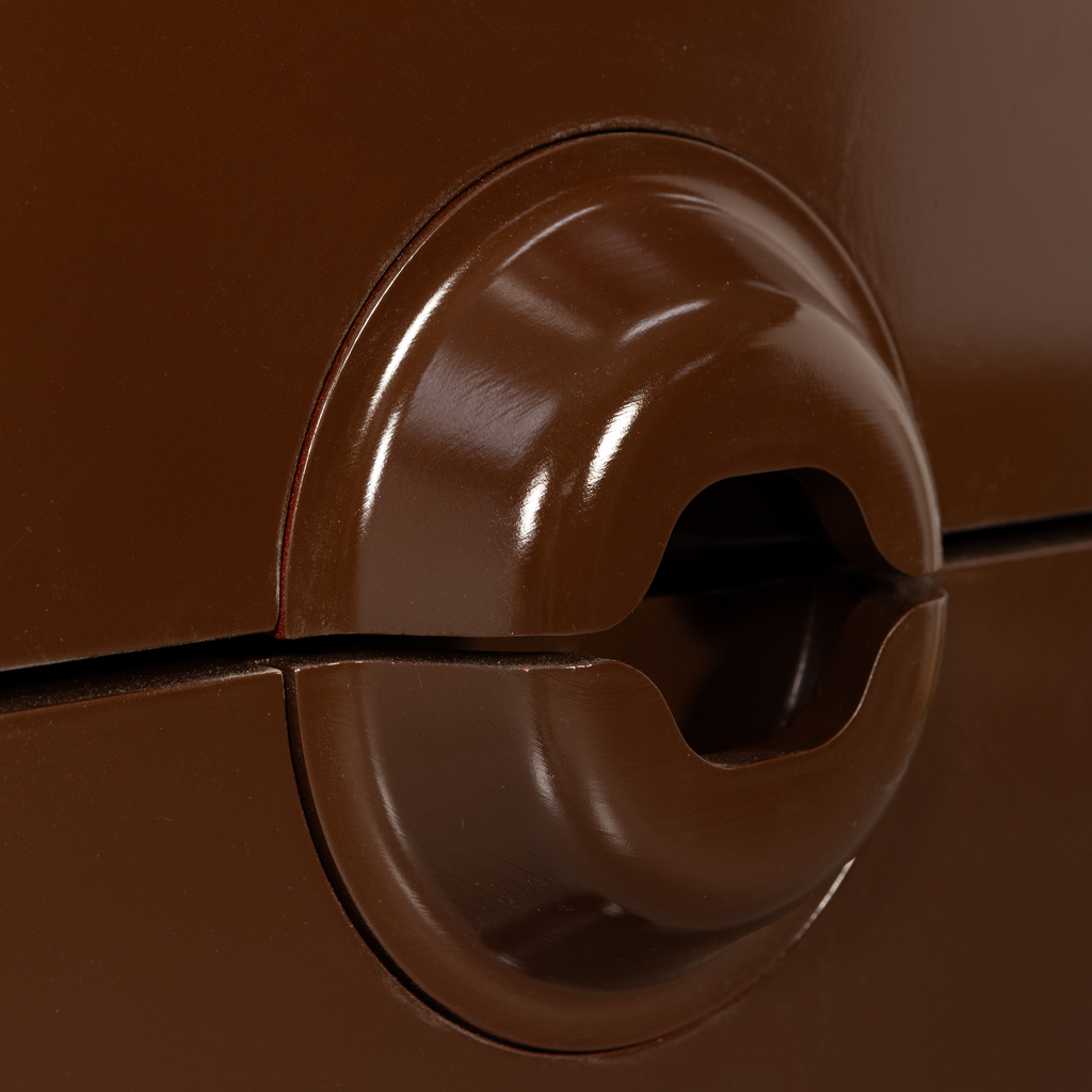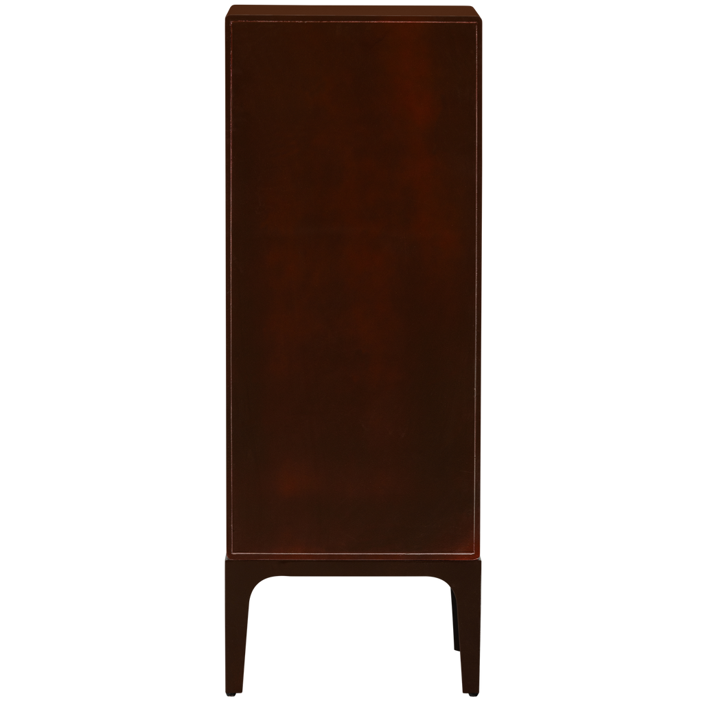 Skåpets djupa bruna nyans och släta yta ger en varm och inbjudande känsla till vilket rum som helst. För extra stabilitet rekommenderas väggmontering, särskilt för skåp högre än 50 cm. Produkten levereras färdigmonterad, redo att placeras i ditt hem.