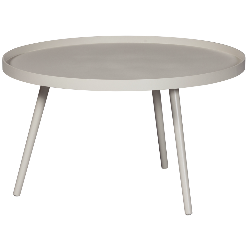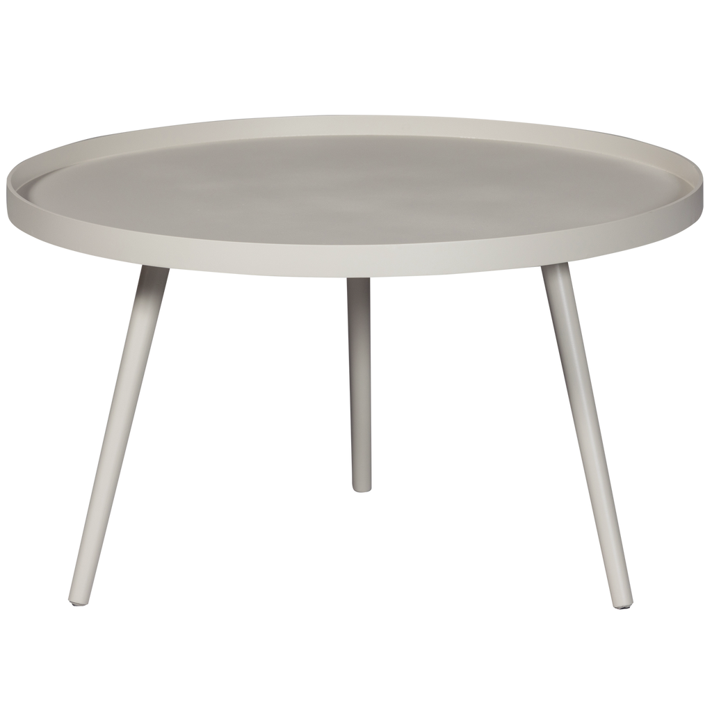 Stilrent sidobord i sandfärgat MDF med grangranben. Perfekt för alla rum och finns i flera storlekar.
