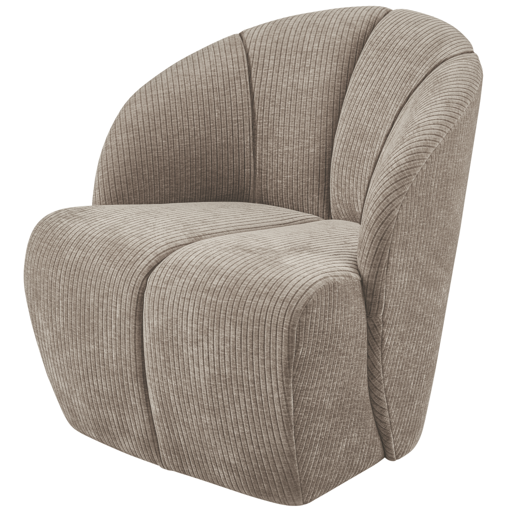 WOOOD Mojo Svängbar Fåtölj kombinerar elegans och komfort med sitt moderna ribbade tyg och stilrena design.