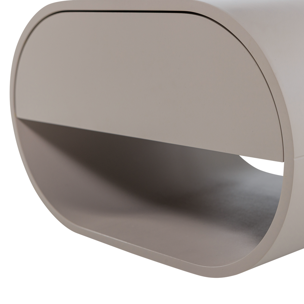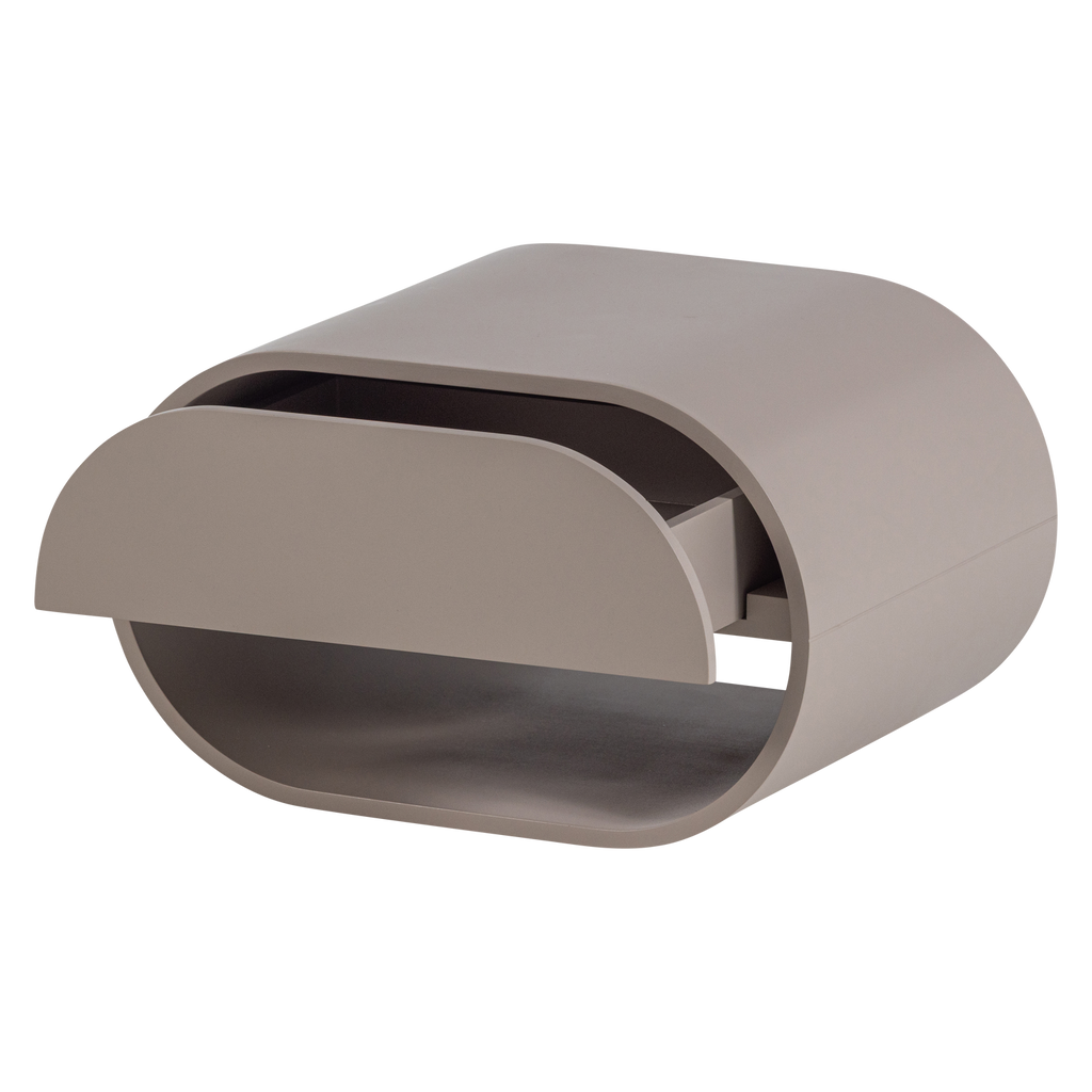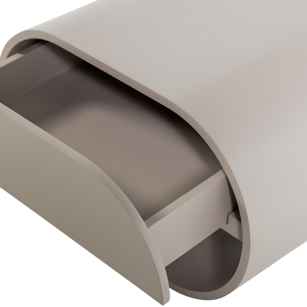 Denna eleganta och praktiska väggmonterade låda från WOOOD är en perfekt lösning för både sovrummet och vardagsrummet. Med sin mjuka, runda form och sandfärgade finish skapar den en varm och inbjudande atmosfär.