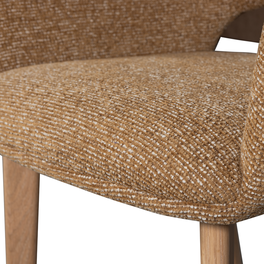 Den vävda chenilletygen är inte bara vacker utan också praktisk med en Martindale på 30,000+, vilket innebär hög slitstyrka och långvarig kvalitet. För enkel rengöring, använd en dammsugare med möbelborste och torka fläckar försiktigt utan att gnugga. För extra skydd rekommenderas impregnering. Stolens moderna design och gula färg gör den till ett stilrent inslag i ditt hem.