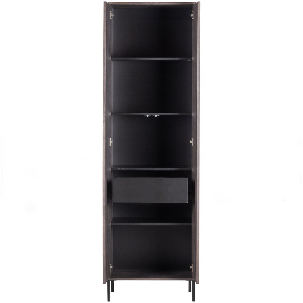 Eleganta skåpet i askfanér med espressofinish erbjuder stil och praktisk förvaring med justerbara hyllor och en låda.