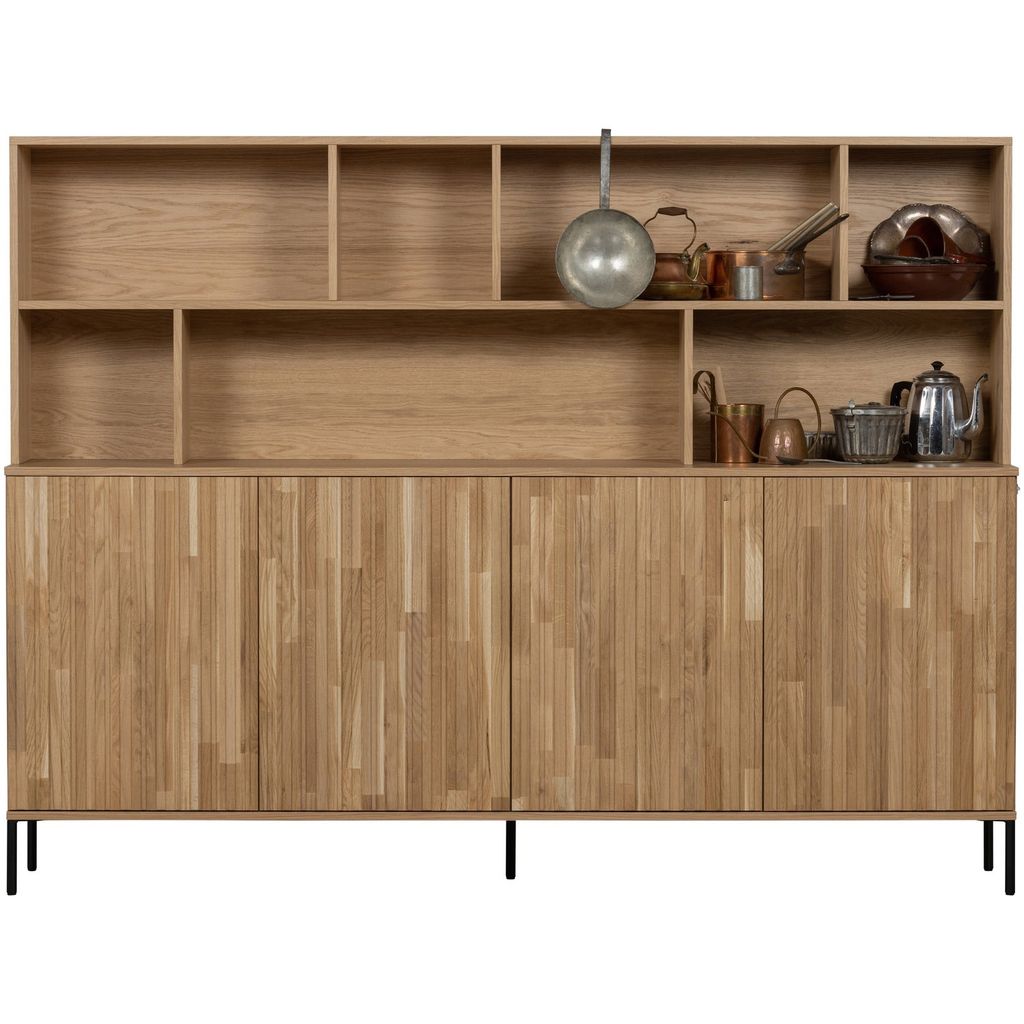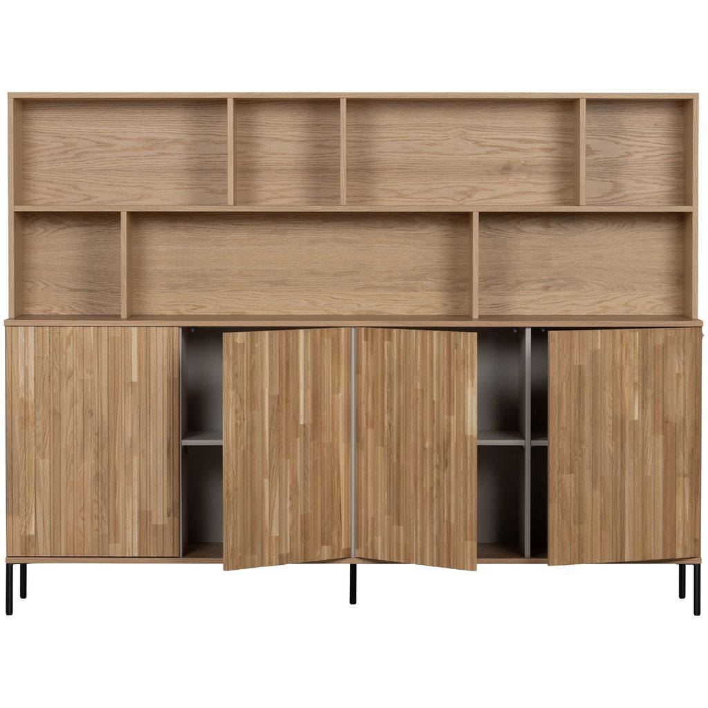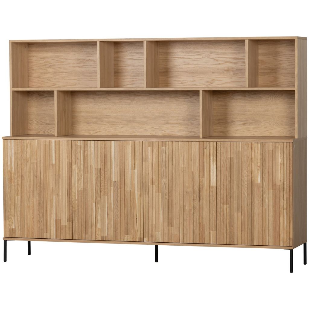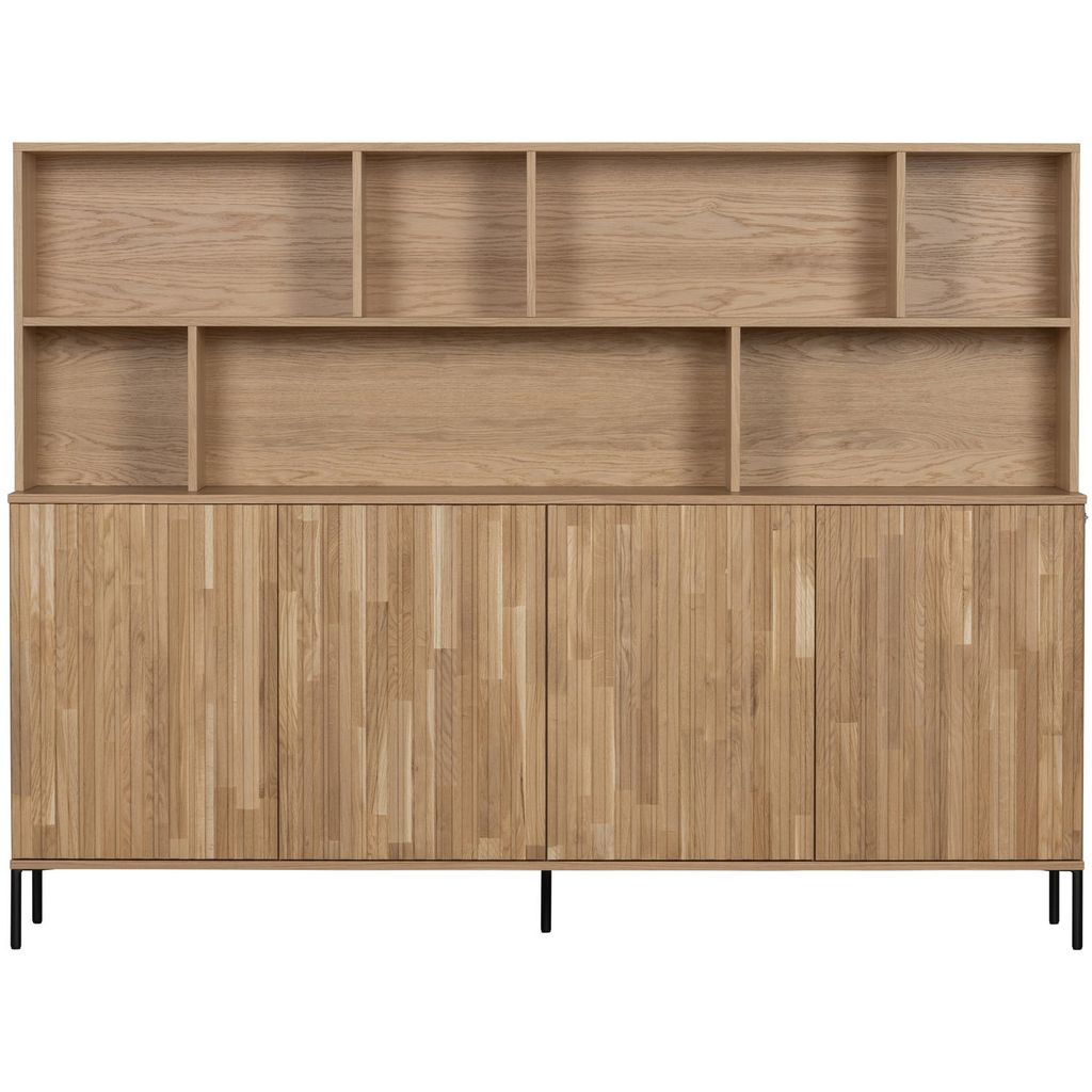 Elegant väggskåp i ek med klarlack, perfekt för att visa upp dina finaste accessoarer. Generöst förvaringsutrymme bakom reliefdörrar.